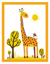 This charming giraffe poster set adds a touch of adventure to a child's room. The set includes both framed and unframed versions, providing flexibility. Use the framed version for a polished look, or choose the unframed version to highlight the giraffe's natural grace.