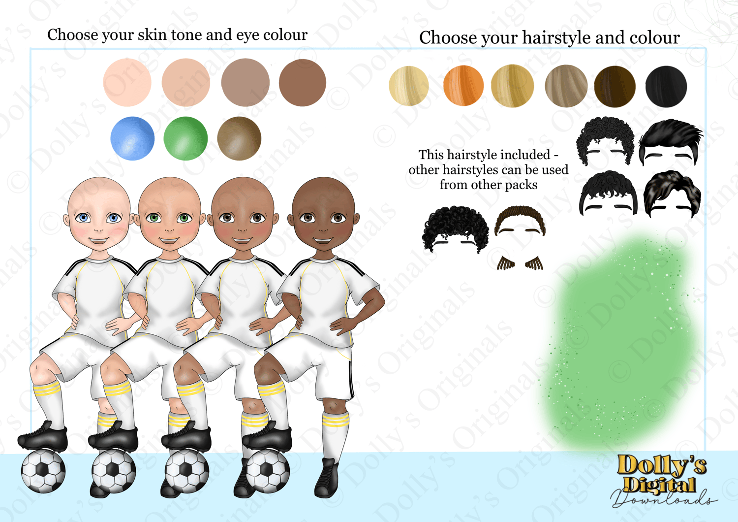 Instant digital download of our Football Boys in White, Black and Yellow PNG (36 PNG’s)