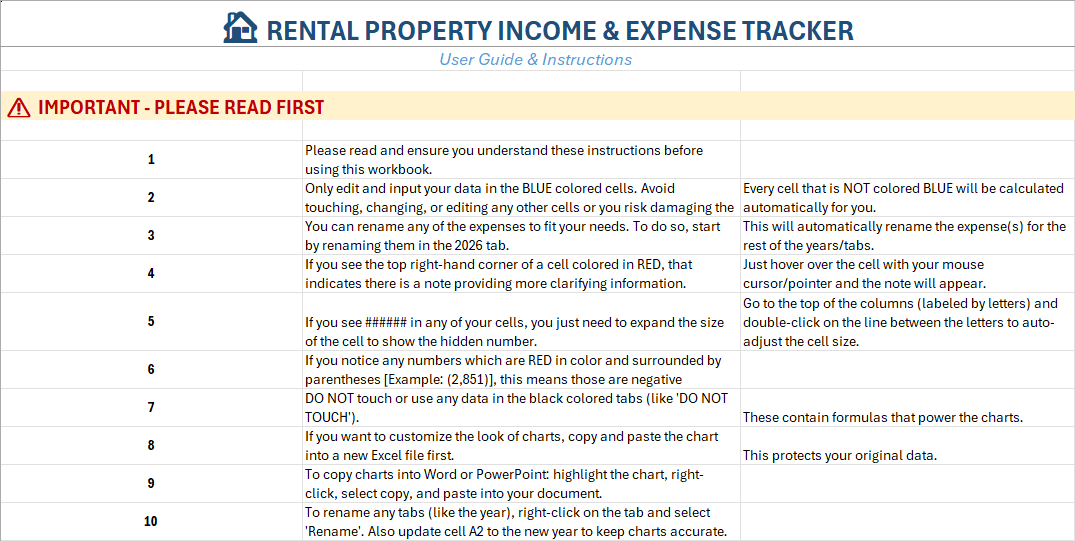 ✅ Easy Data Entry – Only edit the BLUE cells; everything else calculates automatically