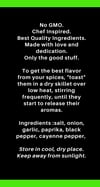 Ingredients: salt, onion, garlic, paprika, black pepper, cayenne pepper