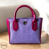 You can make at least two versions of the bag. One is the designer-inspired style and the other has an alternate handle and minimal hardware. Both bags may include your choice of a shoulder strap using purchased strap anchors and your own strap. Placement for the strap anchor is marked on the gusset for you. A strap anchor pattern is included as a bonus.