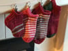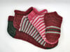 The pattern uses worsted weight yarn, but knit nice and densely for warmer socks and longer wear.
