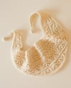 - Sample yarn, off-white shawl, small: Wigeon from Purl Soho (100% Falkland merino, 359yds / 328m, 3.5oz / 100g) held together with Tussock from Purl Soho (60% mohair, 40% silk, 328yds / 300m, 0.88oz / 25g), both in color Heirloom White (affiliate links)