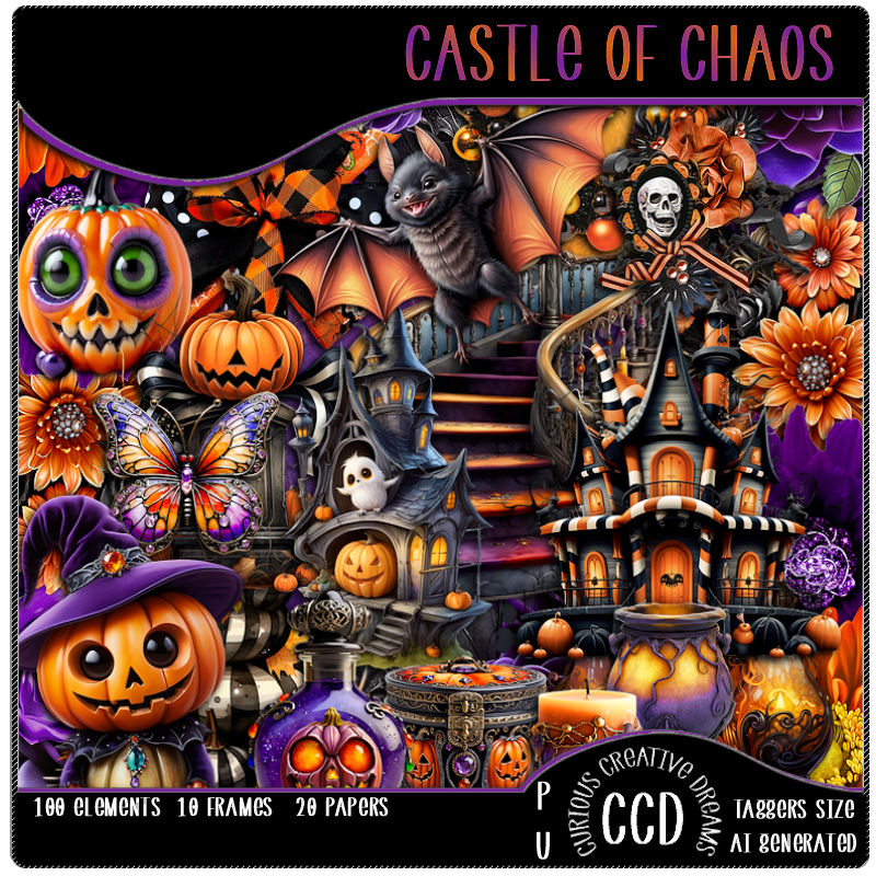 Castle Of Chaos comes with 100 elements , 10 Frames and 20 papers . AI generated , Taggers Size , Personal Use , Tube is not included in the kit