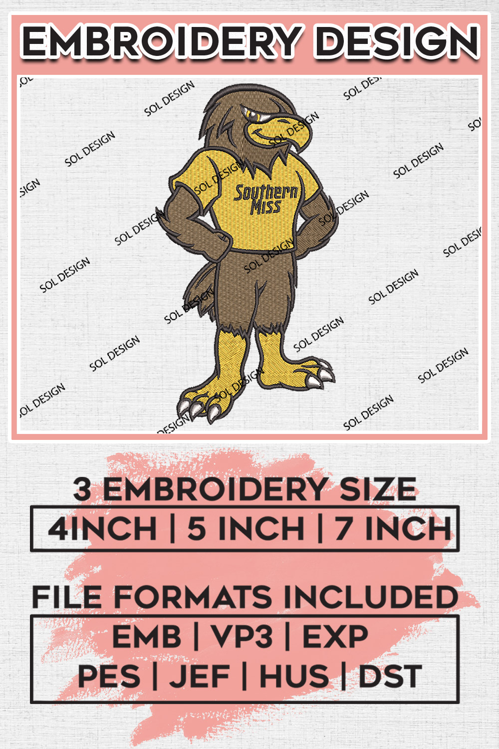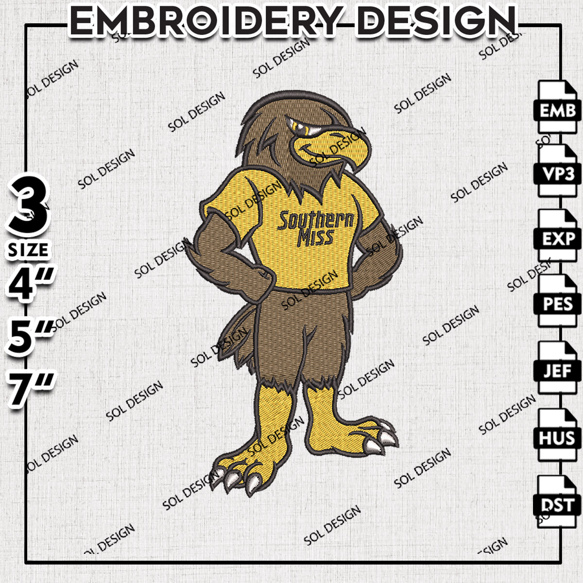 #SouthernMiss #GoldenEagles #NCAA #CollegeFootball #EmbroideryDesigns #FunnyMascot #LogoEmbroidery #NCAAEmbroidery #SouthernMissLogo #GameDayEmbroidery #MachineEmbroidery #DigitalDownload #EmbroideryFiles #SportsEmbroidery #TeamSpirit #CollegeSports #EaglePride #CustomEmbroidery #FootballSeason #EmbroideryArt #DIYEmbroidery #FanGear #SportsLogos #EmbroideryPatterns #NCAAFans #GoldenEaglesNation #CreativeEmbroidery #EmbroideryCommunity #GameDayReady #EagleFans