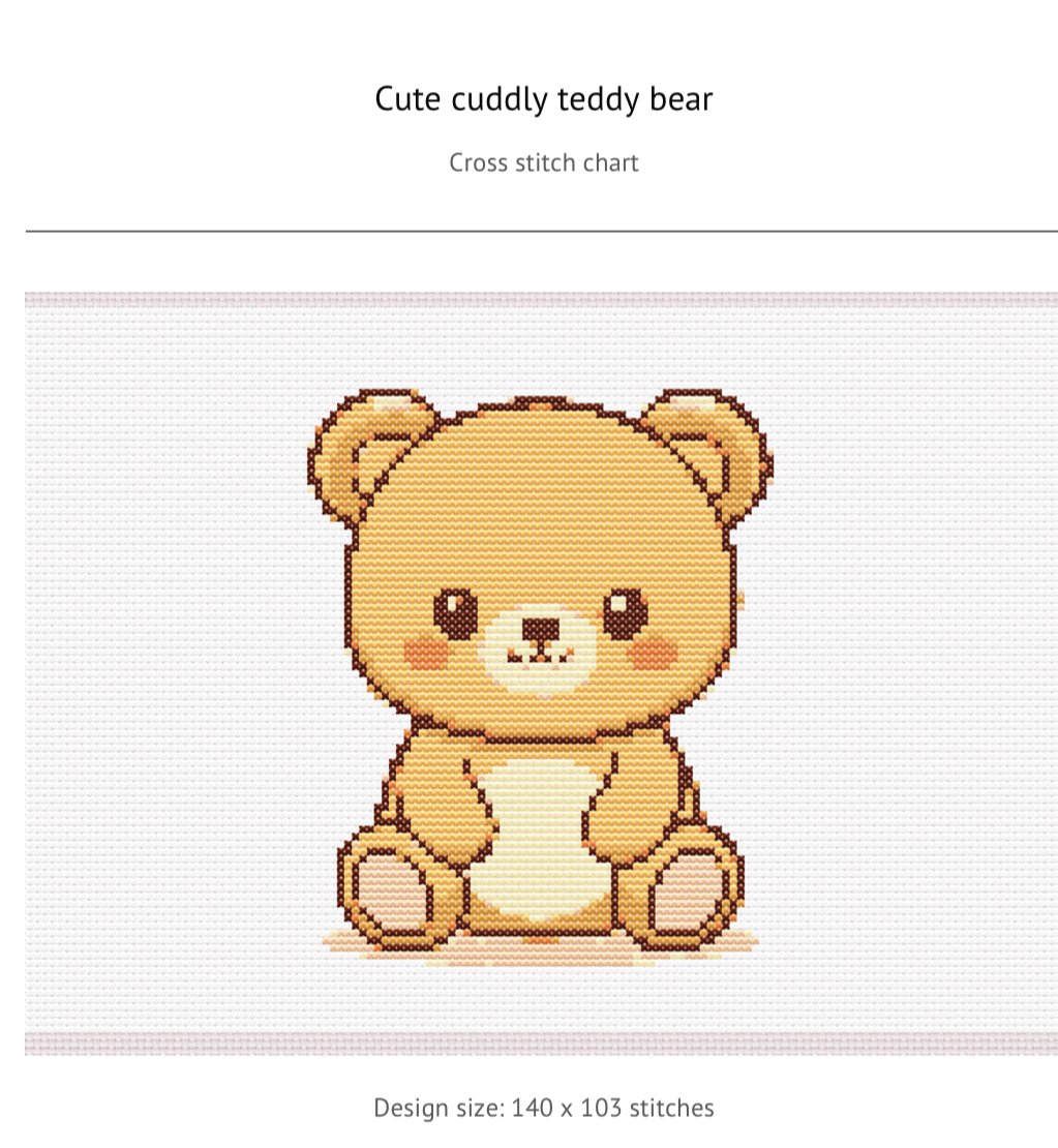 Cute Cuddly Teddy Bear – Cross Stitch Pattern (PDF) Digital Download