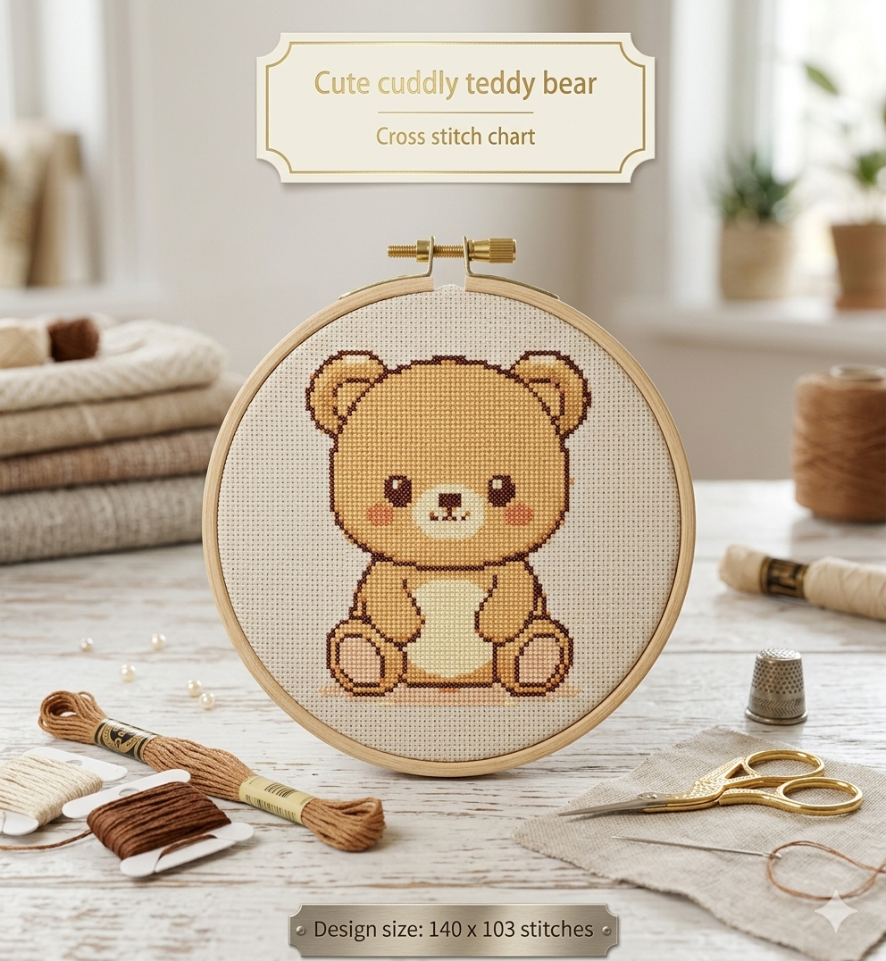 🧸 Cute Cuddly Teddy Bear – Cross Stitch Pattern (PDF)
