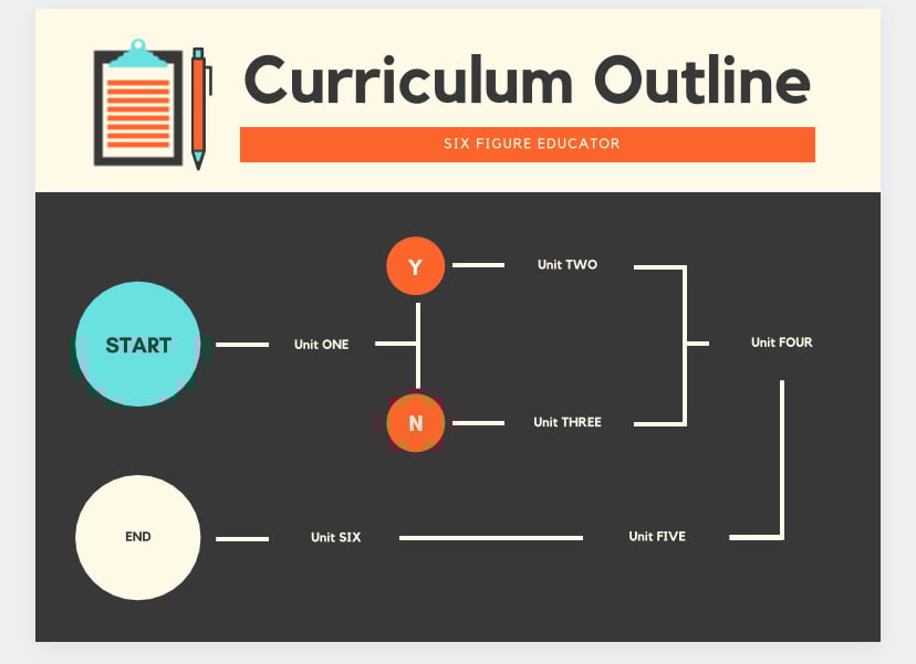 Custom learning solutions for digital entrepreneurs. Written instructional design of your digital Ecourse. Content is organized with vertical and horizontal alignment.