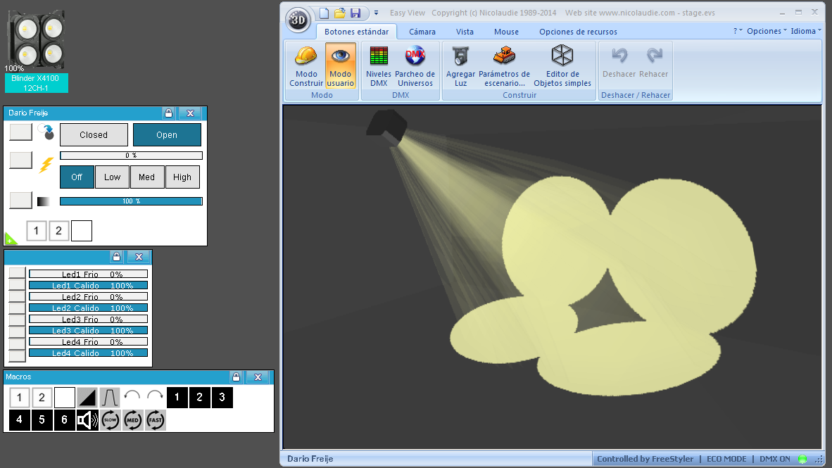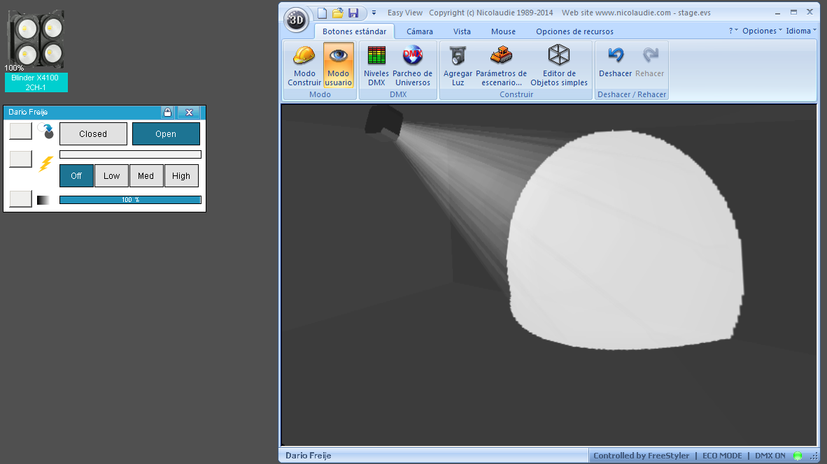 - Esta librería NO reemplaza al Fixture de Freestyler o QLC+, sólo es para ver la representación 3D. Es decir, HAY QUE TENER YA EL FIXTURE DE FREESTYLER o de QLC+ para controlar el equipo real.