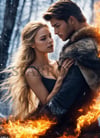Keywords include: Paranormal romance, Love and supernatural, Fantasy couple, Ghostly love, Mystic romance, Enchanted lovers, Otherworldly passion, Supernatural relationship, Magical embrace, Eerie romance, Ethereal couple, Haunting love, Dark fantasy love, Mysterious connection, Ghostly soulmates, Fantasy love story, Paranormal passion, Enigmatic lovers, Mystic bonding, Spooky romance, Stock image, High-resolution, Fantasy background, Romantic scene, Love concept, Storytelling, Digital art, AI, Creative design, Surreal atmosphere, Dreamy backdrop, Magical elements, Beautiful couple, Artistic composition, Commercial use, Atmospheric lighting, Mystical setting, Relationship concept, Emotive characters, Fictional love, Editorial use, Advertising, Marketing, Social media, Website design, Blog post, Article illustration, Book cover, Magazine layout, Poster design, Brochure, Presentation, E-book, Print material, Digital publication, Educational materials, Background image, Wallpaper, Conceptual art, Storytelling Wolf shifter couple, Full moon background, Romantic moonlit scene, Alpha wolf pack, Fated mates embrace, Shapeshifter love, Enchanted forest setting, Moonlit meadow, Mystical bond, Howling wolves, Silhouetted trees, Nighttime romance, Alpha male and female, Lycanthropy fantasy, Supernatural passion, Mystic atmosphere, Moonlit wilderness, Fierce connection imagery, Romantic wolf eyes, Moonlit path, young adult romance, YA, PNR, paranormal romance, vampire, vampire hunter, Little Red Riding Hood, serialized online fiction cover image, Radish, Dreame, GoodNovel, iReader, Vella, SWAG, book, author, writer, blogger, creator