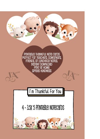 This printable bundle includes 3 full sets of fall-themed note cards, each featuring cozy woodland animals and the phrase “I am thankful for you”. Perfect for sharing kindness with coworkers, teachers, friends, or even as sweet lunchbox notes.