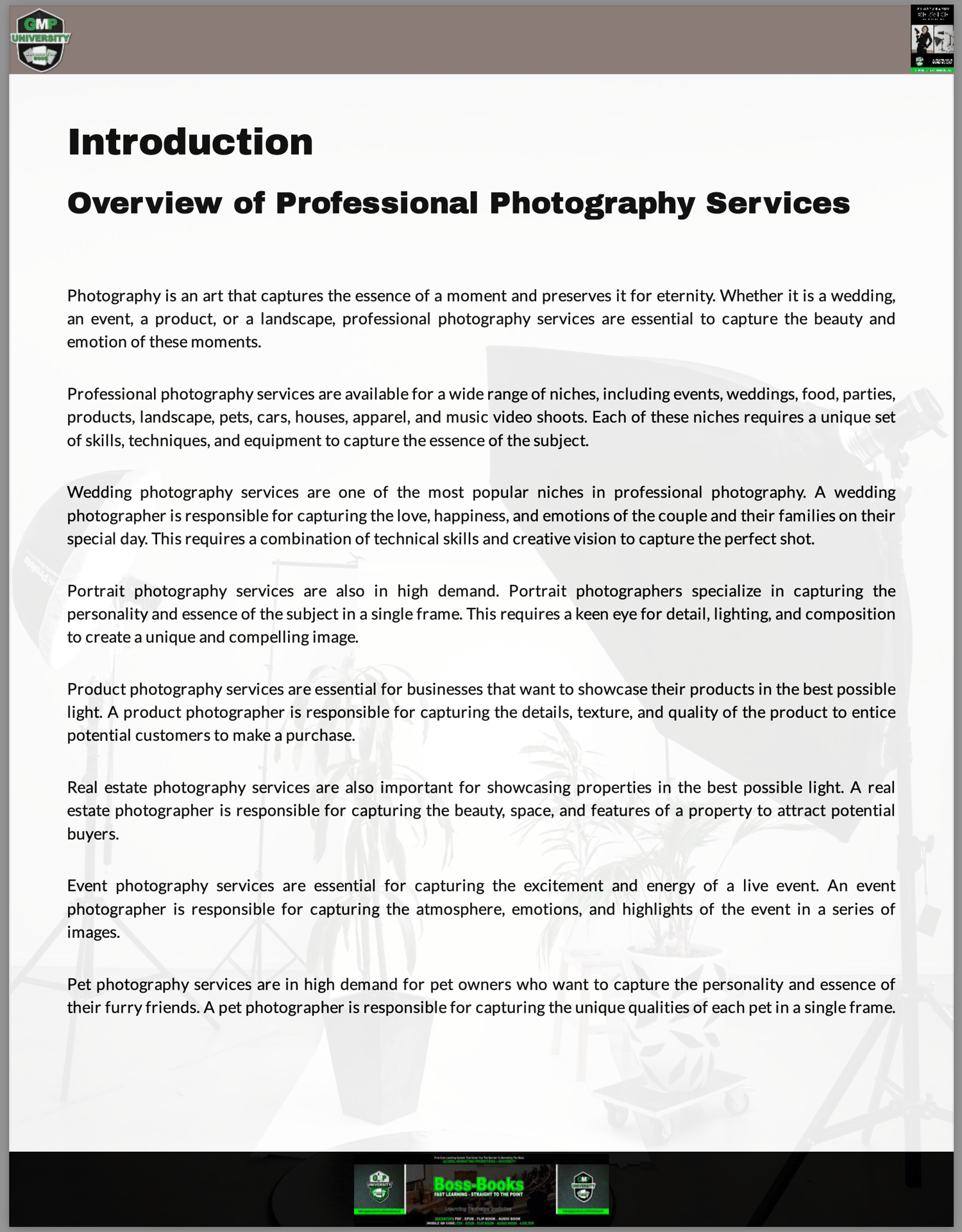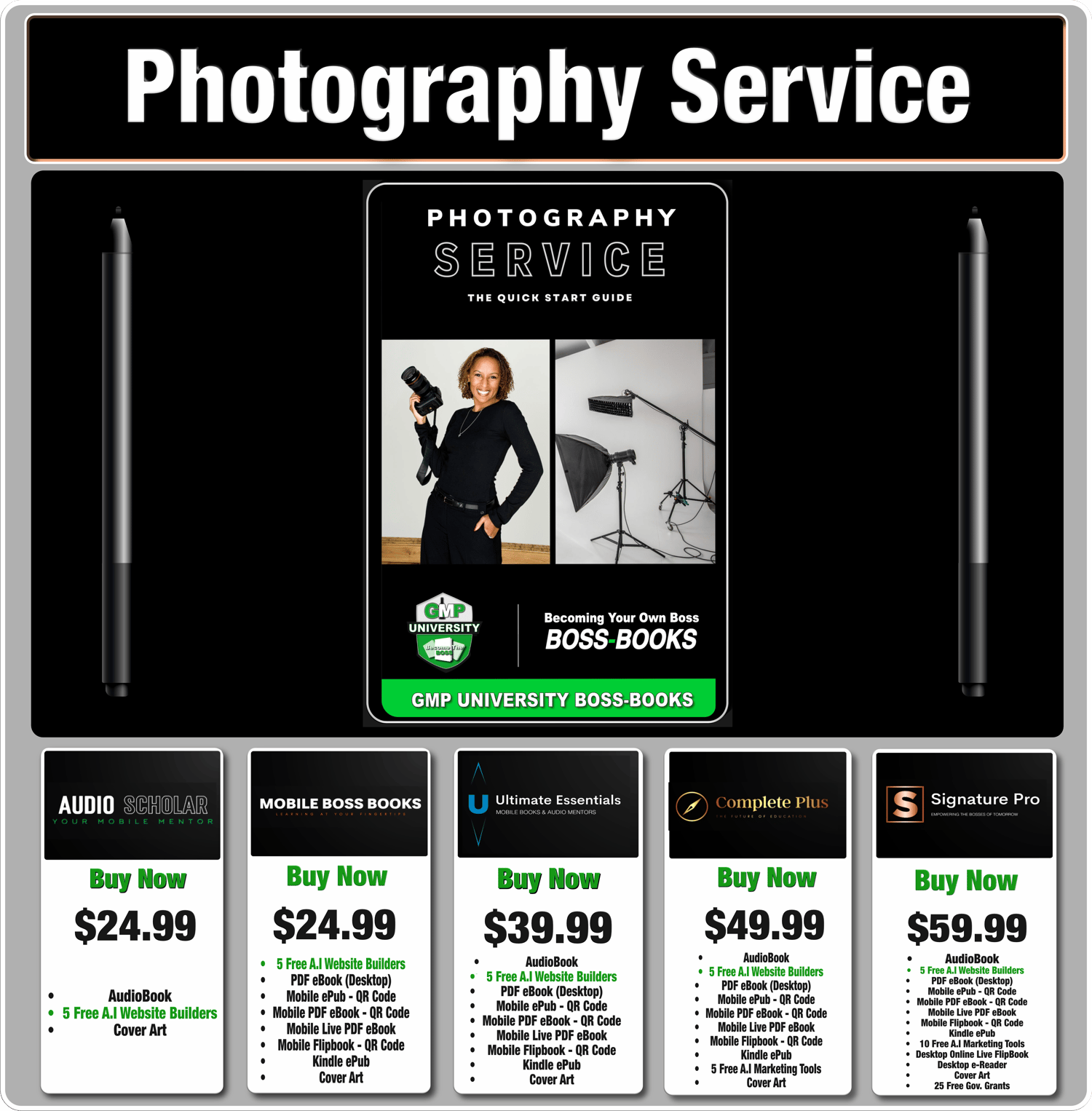 Photography Business - Ultimate Essentials - PDF / AudioBook / 5 Free A.I Website Builders