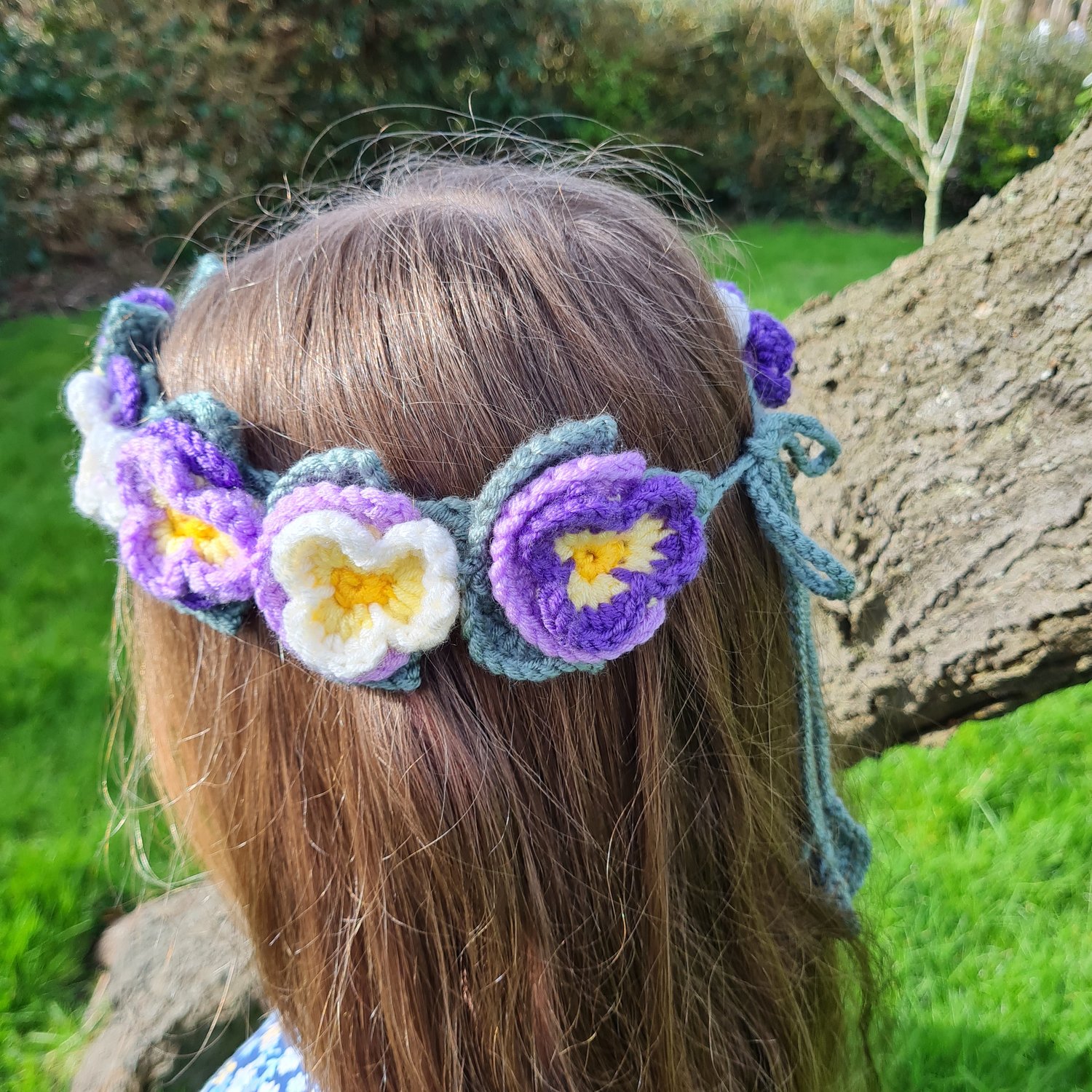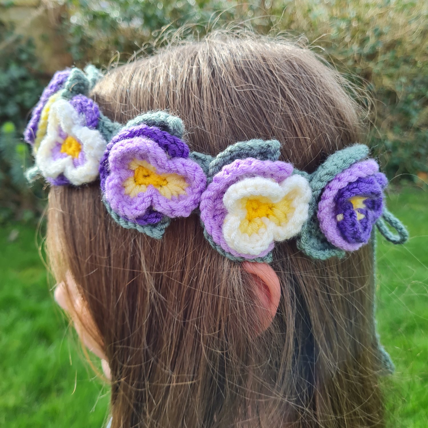 Create your own everlasting flower headband with this crochet pattern. Featuring pretty pansies in delicate spring shades, this is a perfect accessory for a photo shoot or an Easter egg hunt. Perhaps you would like a flower headband for a festival or a role play prop? Whatever your plans, my flower headband crochet pattern will help you make one in no time.