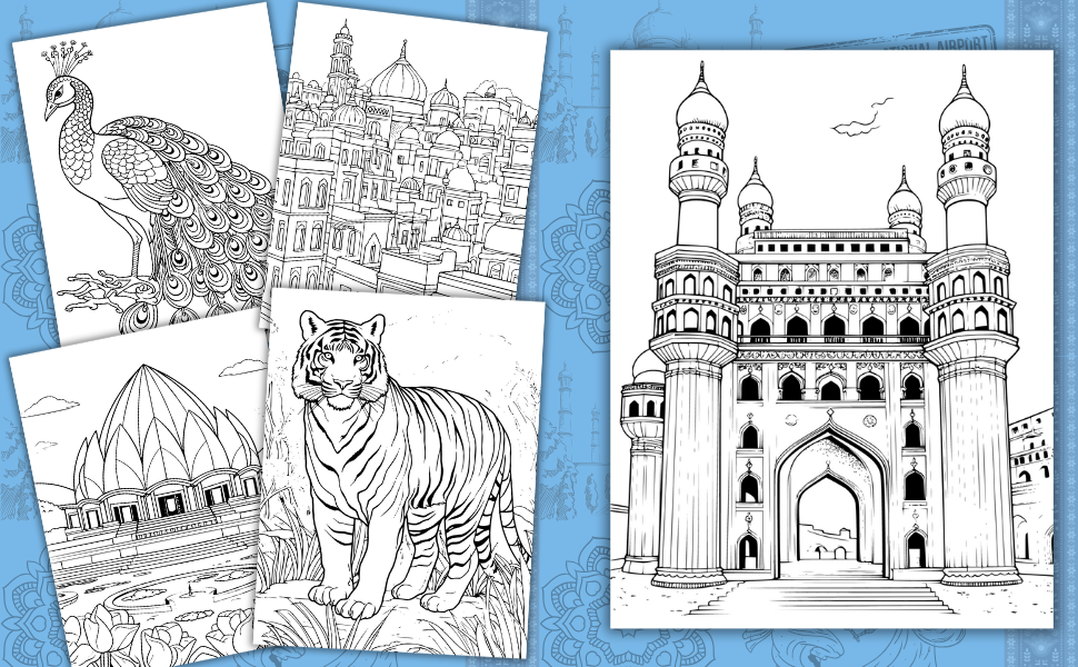 Take a journey of the imagination through India. One of the most intriguing and exotic countries in the world. Grand ancient landmarks fill this country. Get immersed, inspired, and intrigued as you color your way through the iconic landmarks.