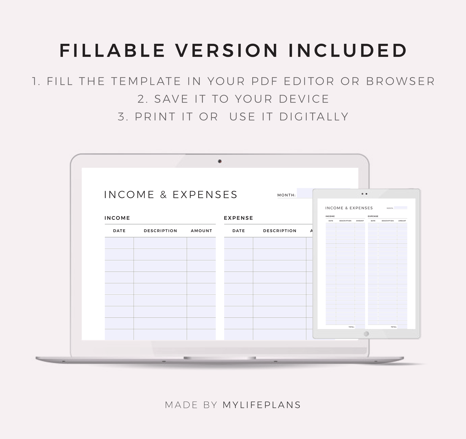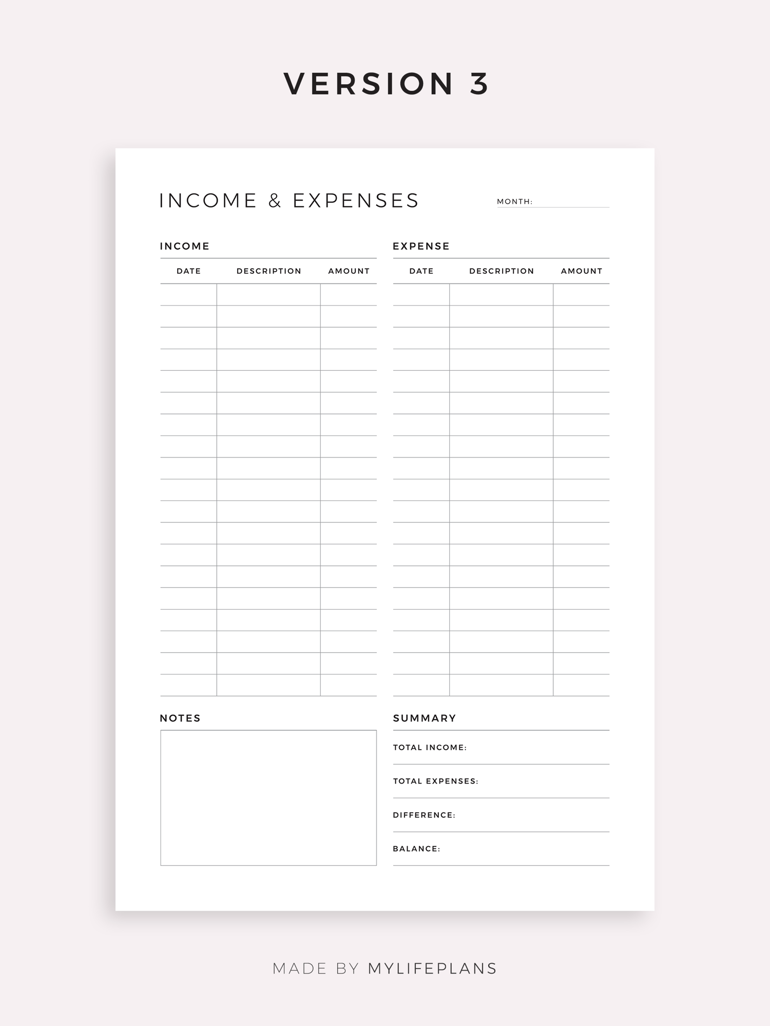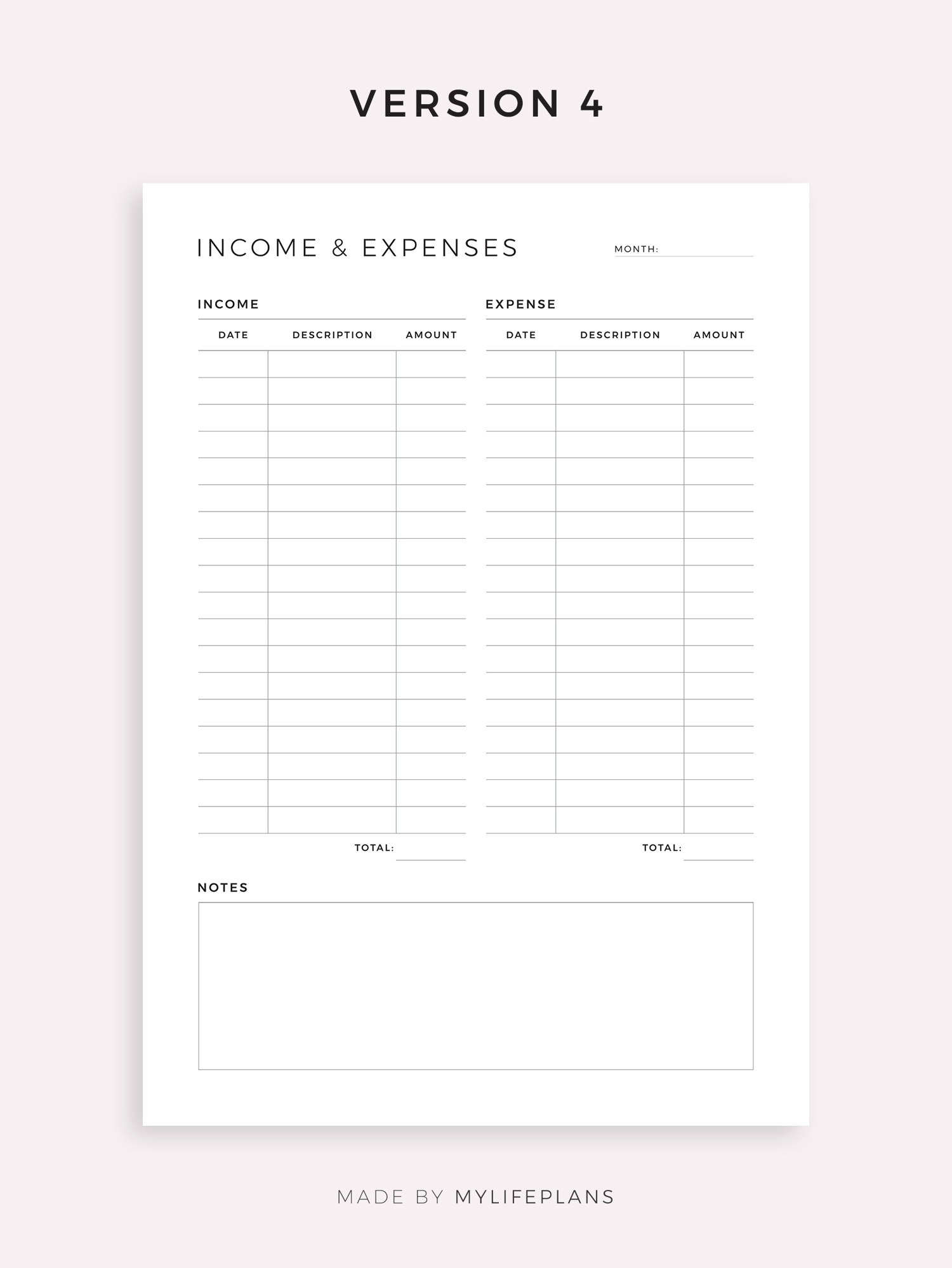This is a printable income and expense tracker — just download, print, and start using it right away.