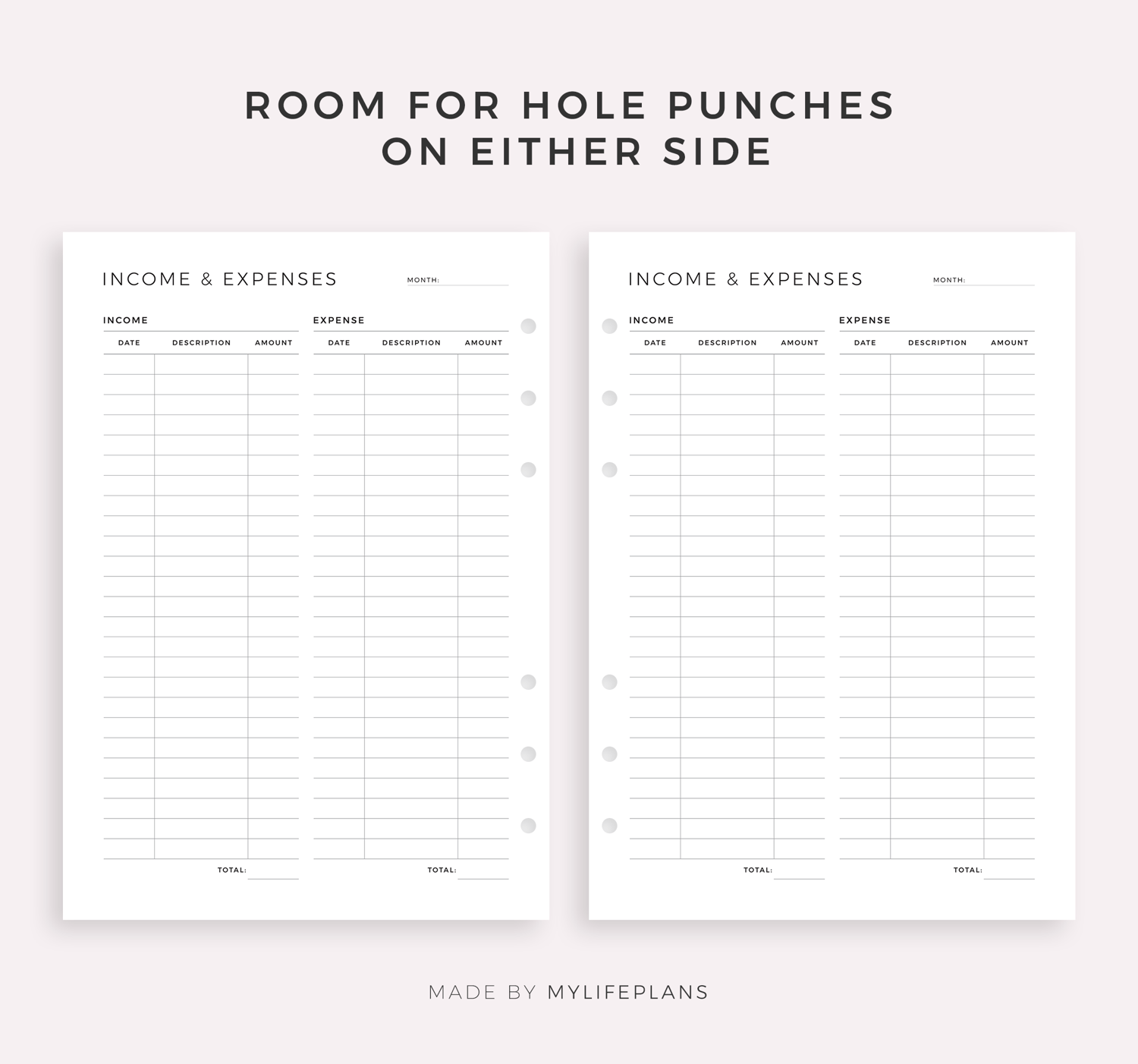 • Space for hole punches on either side