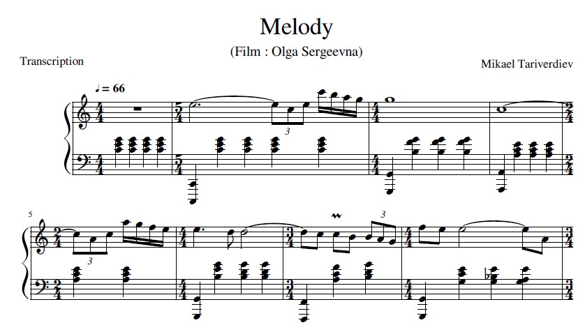 Tariverdiev - Olga Sergeenva (Mélody) - Piano Sheet Music