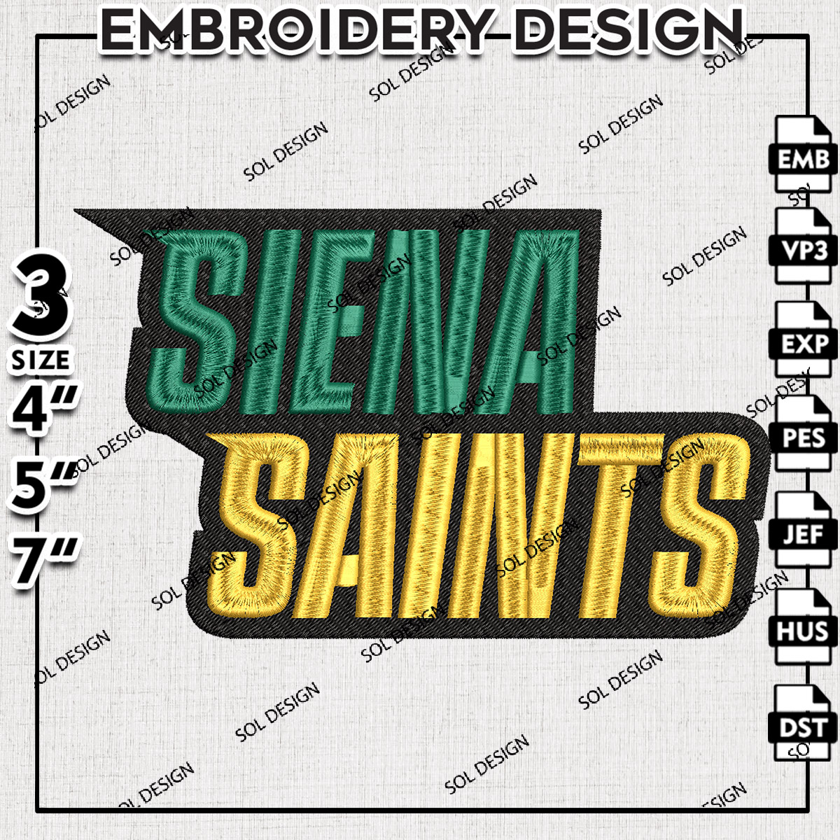 Siena Saints Embroidery Designs, NCAA Siena Saints Machine Embroidery Files, NCAA Logo embroidery designs, Ncaa Siena Logo, Digital Download