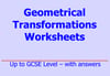 Two worksheets of questions on enlargements, translations, rotations and reflections.