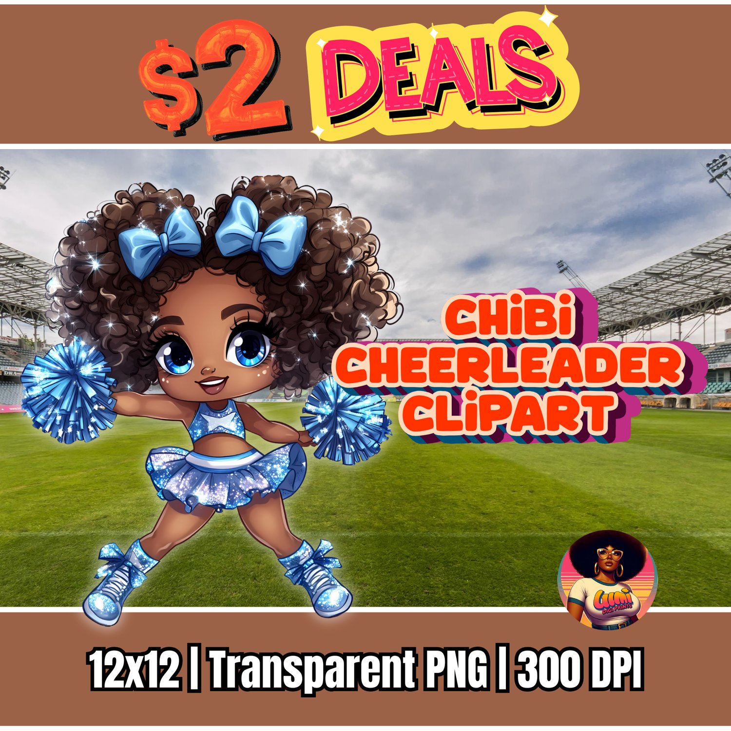 Capture the energy of game day with this dazzling chibi cheerleader girl in a blue uniform. This high-quality clipart is designed for crafters, parents, and small business owners who need a touch of sparkle and spirit for their projects. She's perfect for showing support for any team that wears blue!