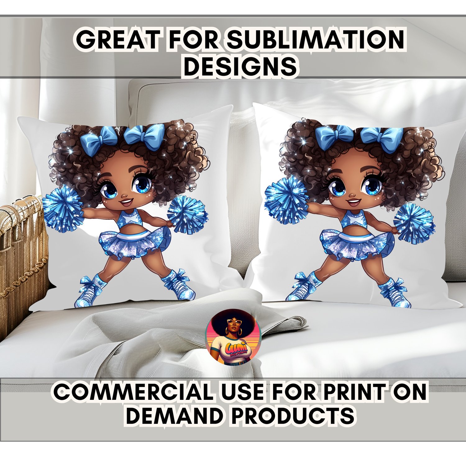 This character is full of life, from her sparkling eyes and confident pose to her beautiful curly hair puffs tied with big blue bows. This is the perfect cute Black girl sports clipart for sublimation, allowing you to create vibrant, professional-looking products with ease.