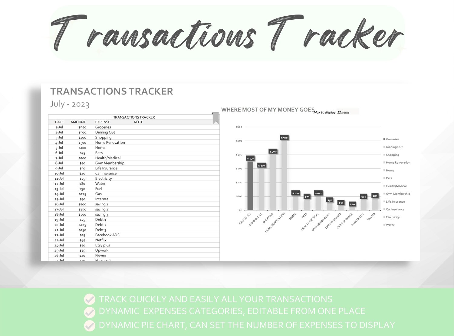 - Transactions Tracker: in which you fill your ACTUAL amounts