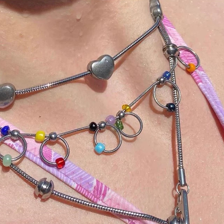 Handmade beaded playful colour ring choker necklace