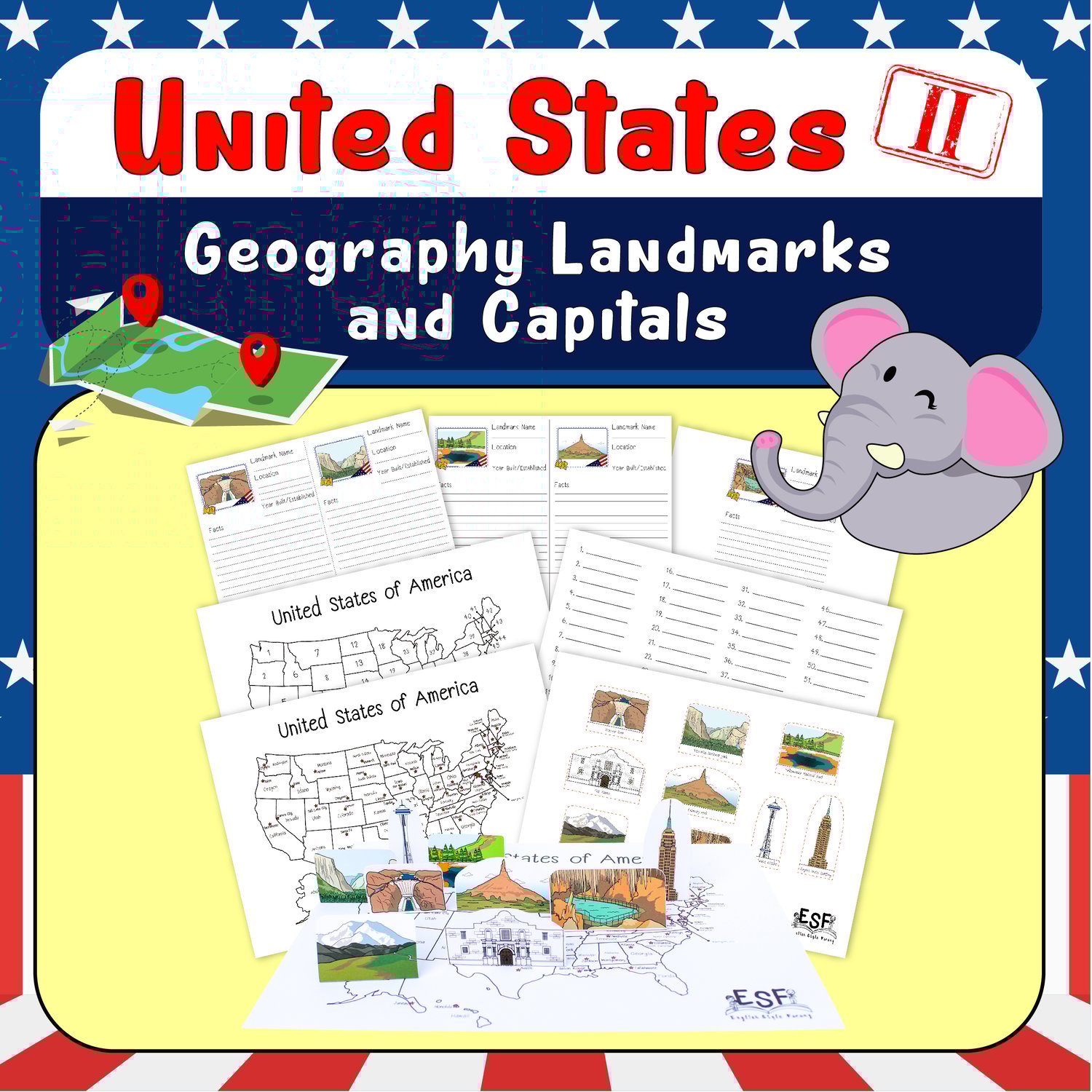 The second part is an information page which features images of some of the important landmarks in the US along with their names, locations, year built/established, and interesting facts about each landmark. After going over the information with them, the students could be required to fill in information they remember in the provided worksheet themselves. The answer key is included.