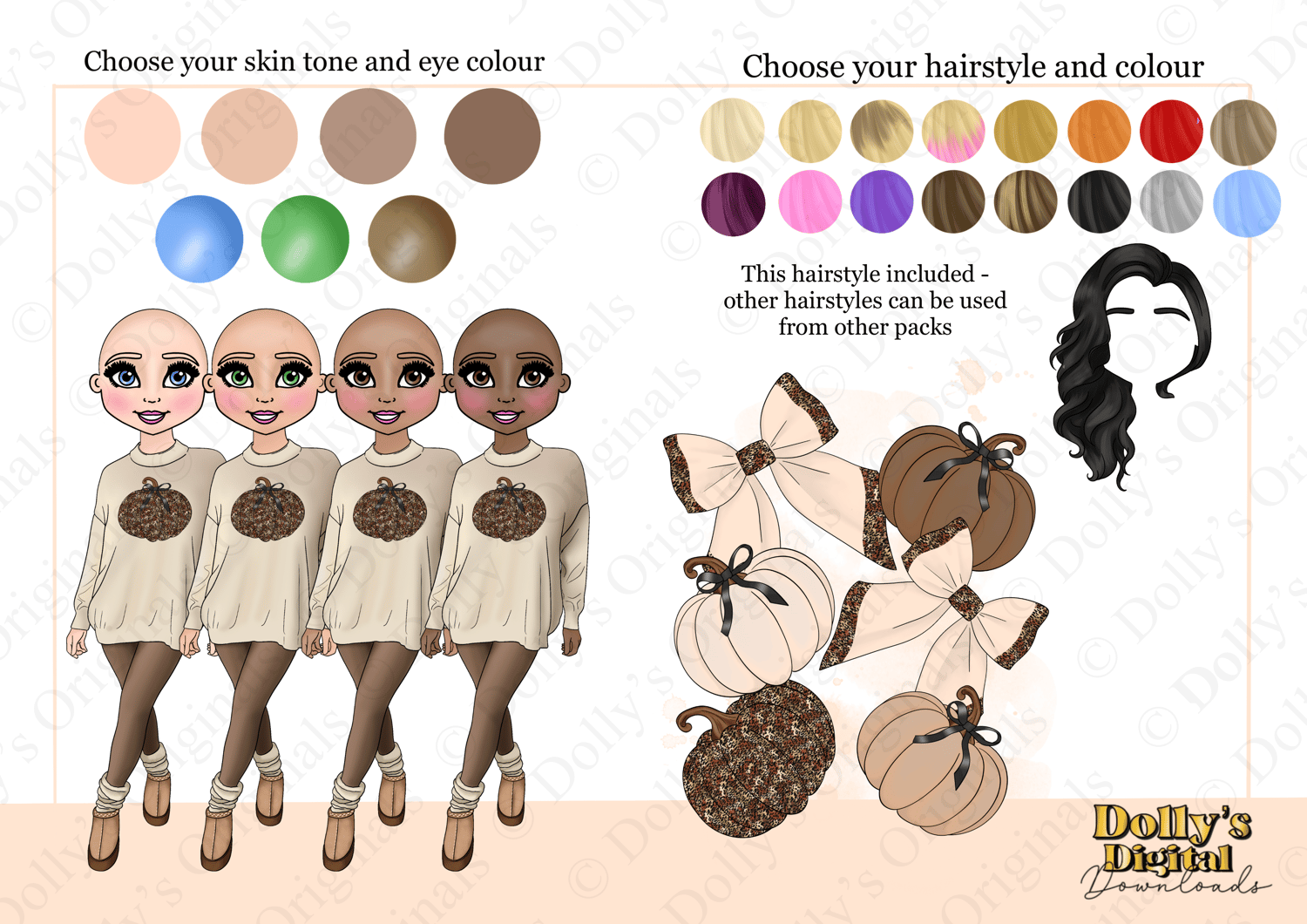 Instant digital download of our Cream and Leopard Print Pumpkin Cosy Dolly Character Bundle PNG (33 PNG’s)