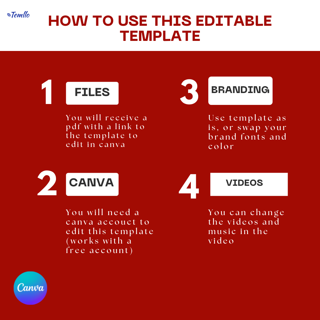 If you would like us to edit everything for you and tailor with your details, logo & brand color, we can do it for you, just message us.