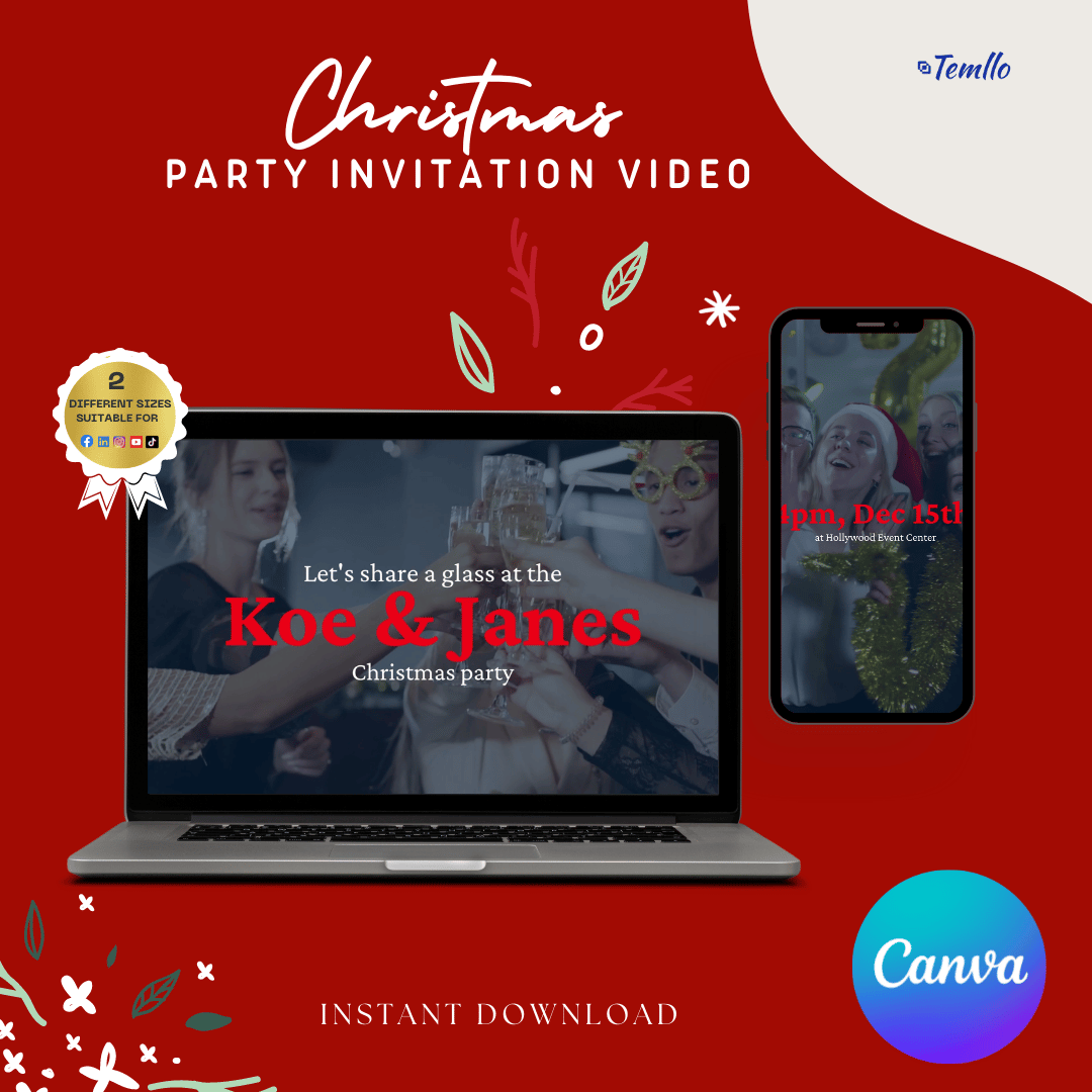 Invite your customers, family, and friends with a personalized Christmas video invite and make your Christmas more memorable. You will receive a link to a reusable editable Canva Video template.