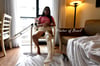 After her arrival at the hotel, she rested and woke up early, as today the private doctor will visit her to exchange her current SLC cast for the future SLWC.The entire process of removing the cast is filmed, and very carefully, as she has 2 fractures in the metatarsal of the foot.