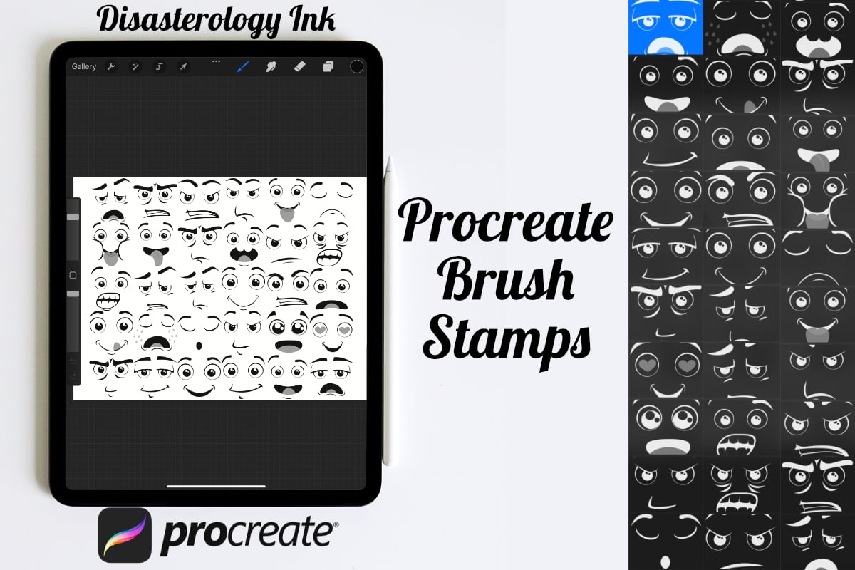 Procreate stamps save time when drawing, saving the effort of having to recreate the same thing for multiple designs and projects, save time on your design by purchasing these clipart style cartoon funny faces brush stamps so you can utilise that time on creating more beautiful art.
