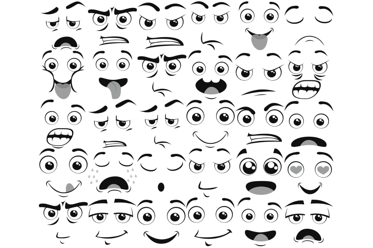 Basic Cartoon Funny Face Procreate Brush Stamp Set 2, 30 Cartoon Face Stamps