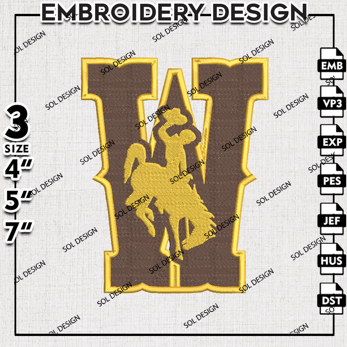 Wyoming Cowboys NCAA Team Logo Embroidery Designs, NCAA Wyoming Cowboys Machine Embroidery Files, NCAA Logo embroidery designs, Ncaa Wyoming Logo, Digital Download