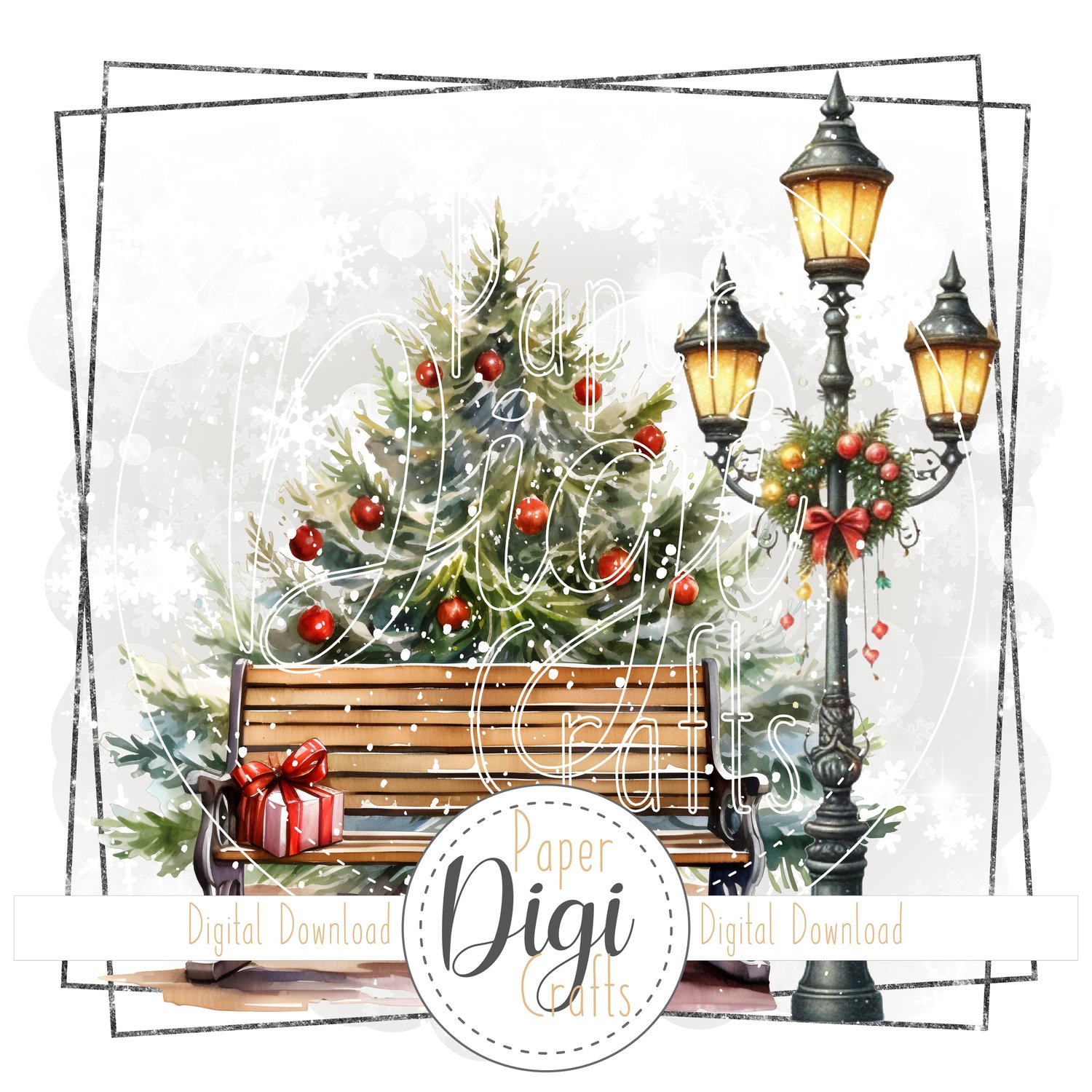 Winter Bench & Lamppost | Digital Download | Sublimation Image | Instant Download | Clipart