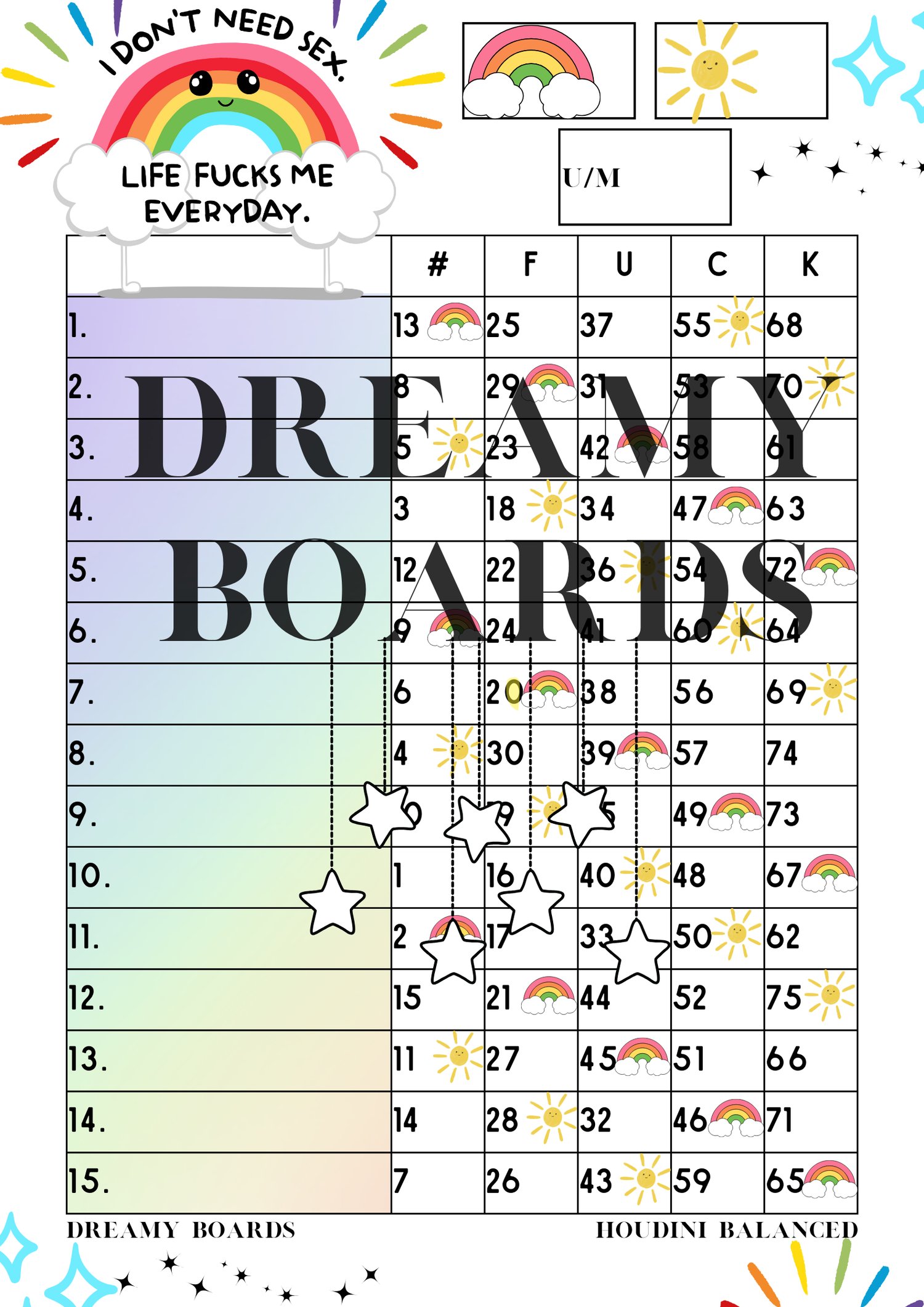75 Ball Board - Please choose which copy you would like (Straight, Mixed or Both!)