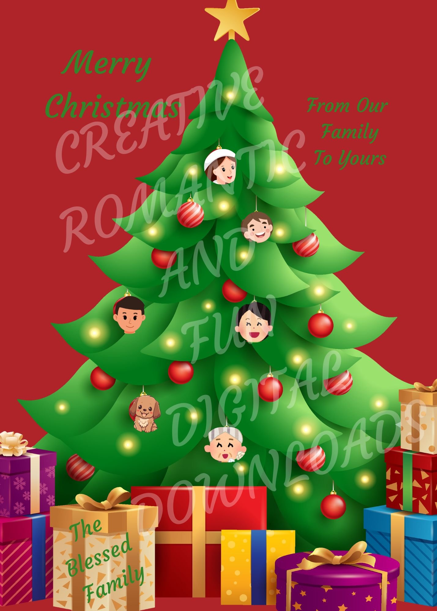 5-MERRY CHRISTMAS FROM OUR FAMILY TO YOURS (5 x 7 in) ADD FAMILY FACES