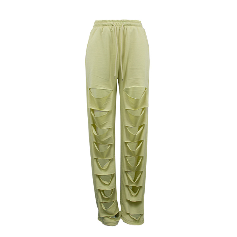 Autumn New High Waist Pants with Broken Holes Casual Loose Tight Waist Wide Leg Pants