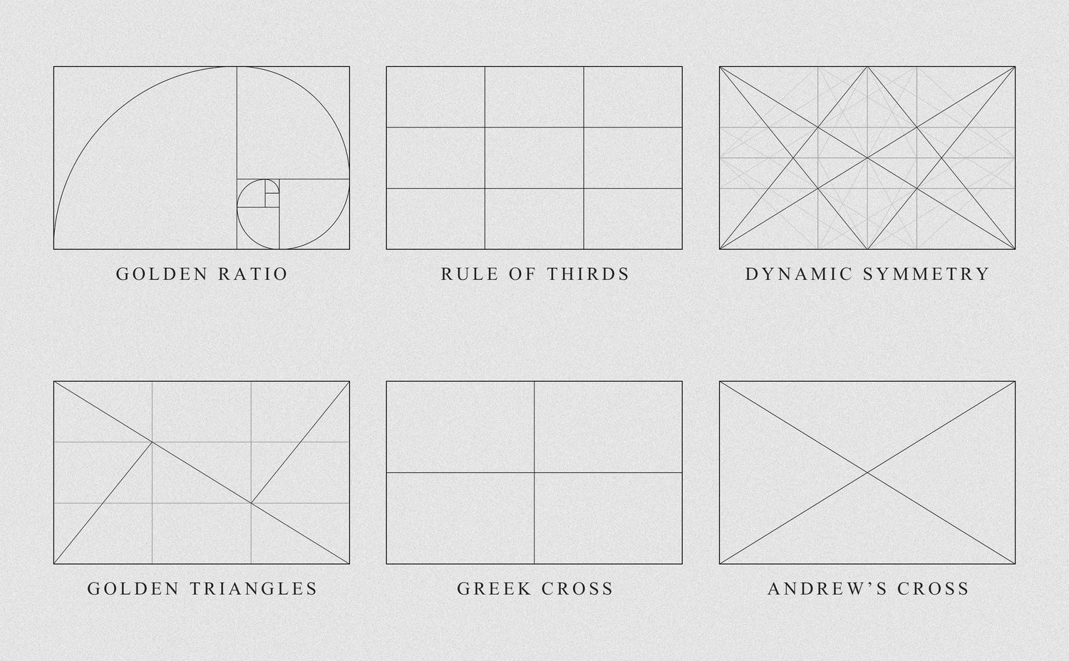 Create aesthetics and visual harmony in your photographs, designs, logos, architectural plans, sculptures, paintings, films and videos with these composition guides.