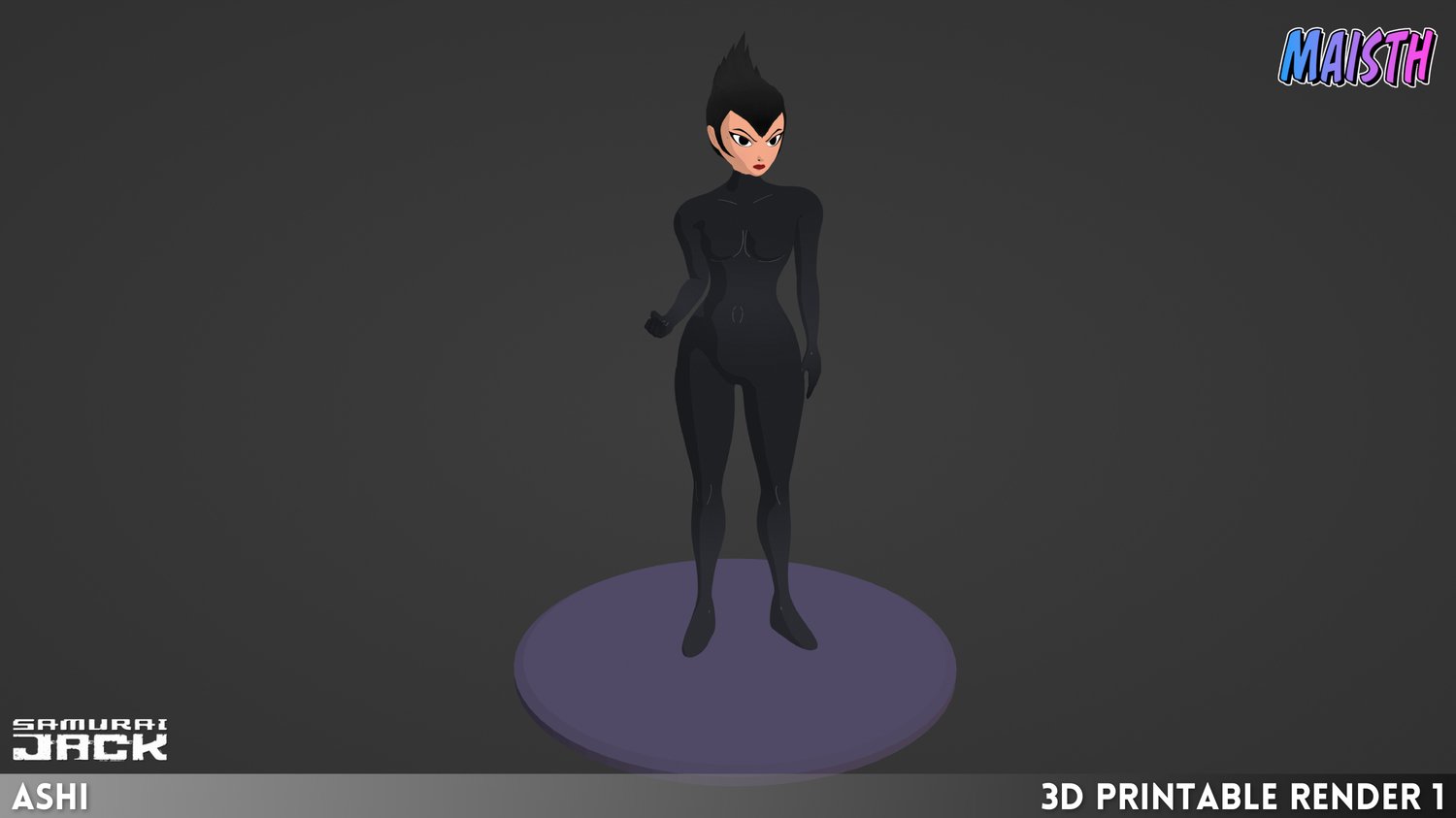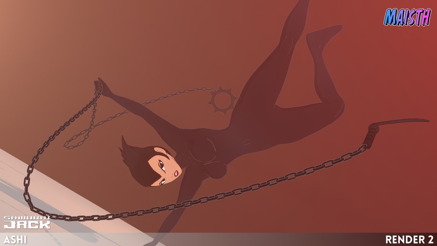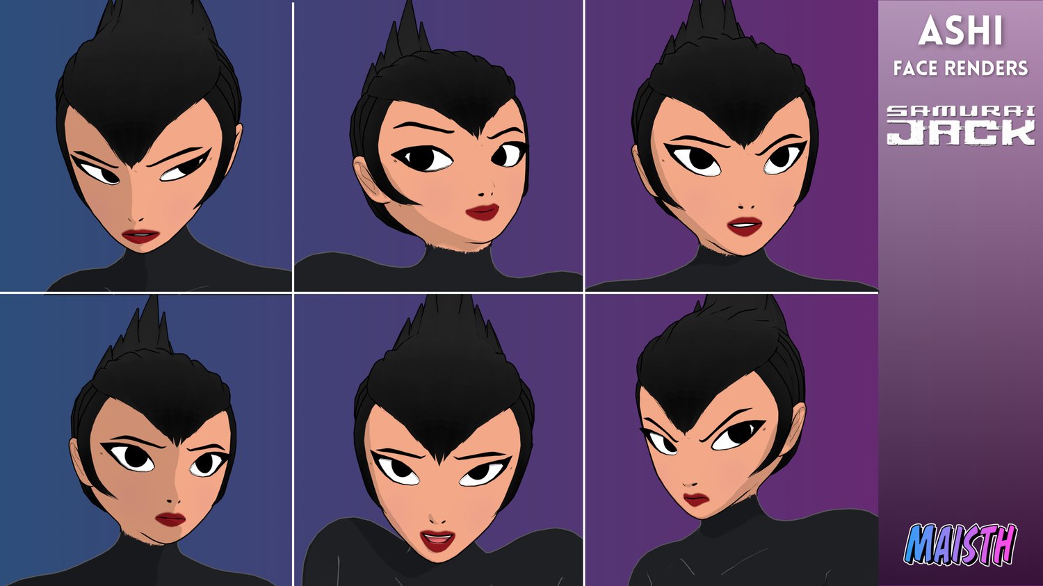 This is a 3D Model of Ashi, from Samurai Jack, created from scratch, this model is based on the cartoon series, it tries to have the same feeling as the Cartoon but taking liberties in the modelling and texturing to have my own style.