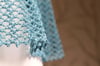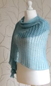 The pattern is fully written and the lace section is also charted so however you like to read your patterns, you’re covered! The pattern has been tech edited and test knitted. There’s a screenshot of the pattern and a list of the stitches used at the bottom of the photos. The pattern uses a garter stitch tab, simple increases/decreases and is finished with a picot bind off. The sample shawl used 722 m (790 yds) of Eden Cottage Titus 4ply.