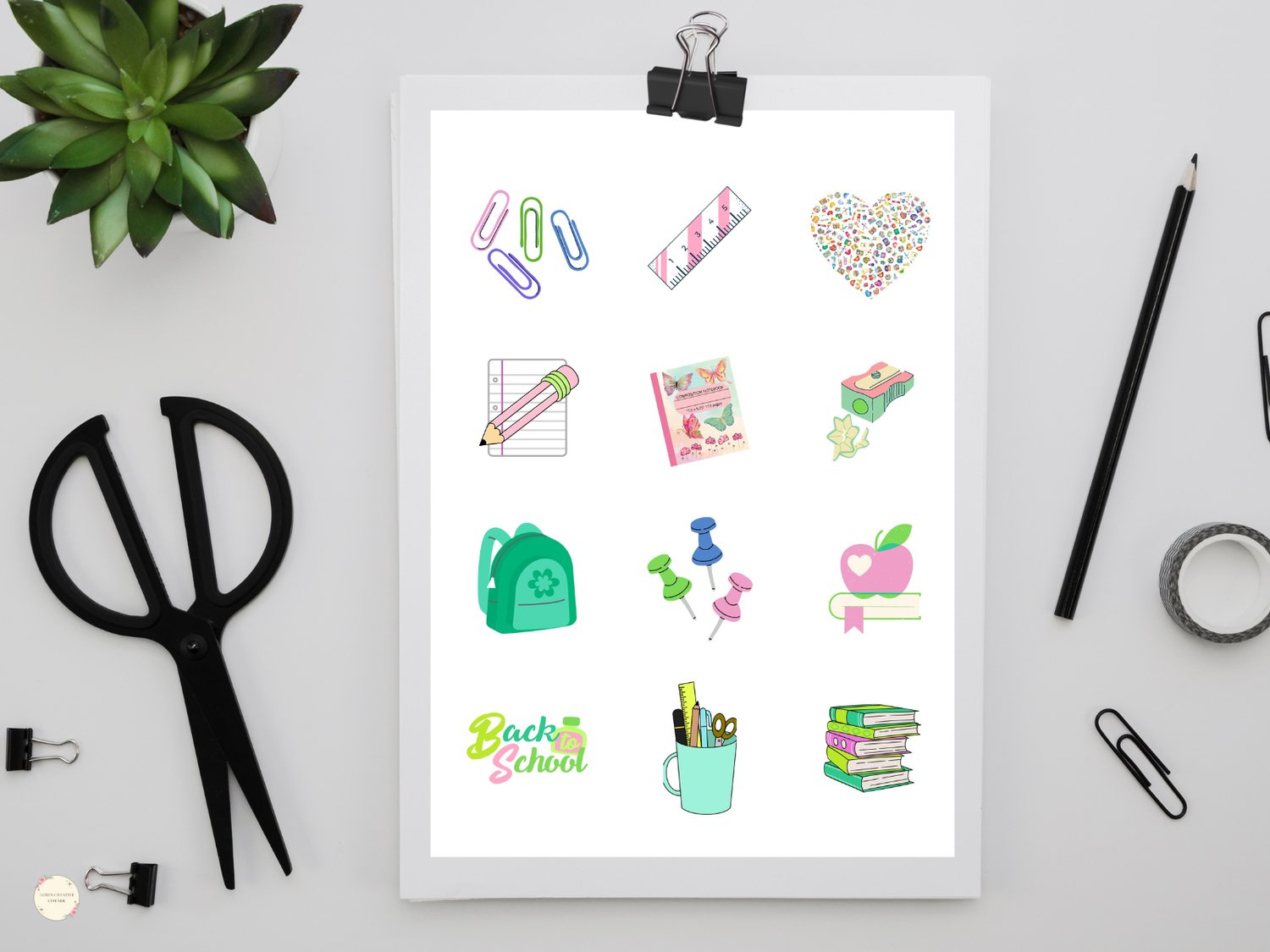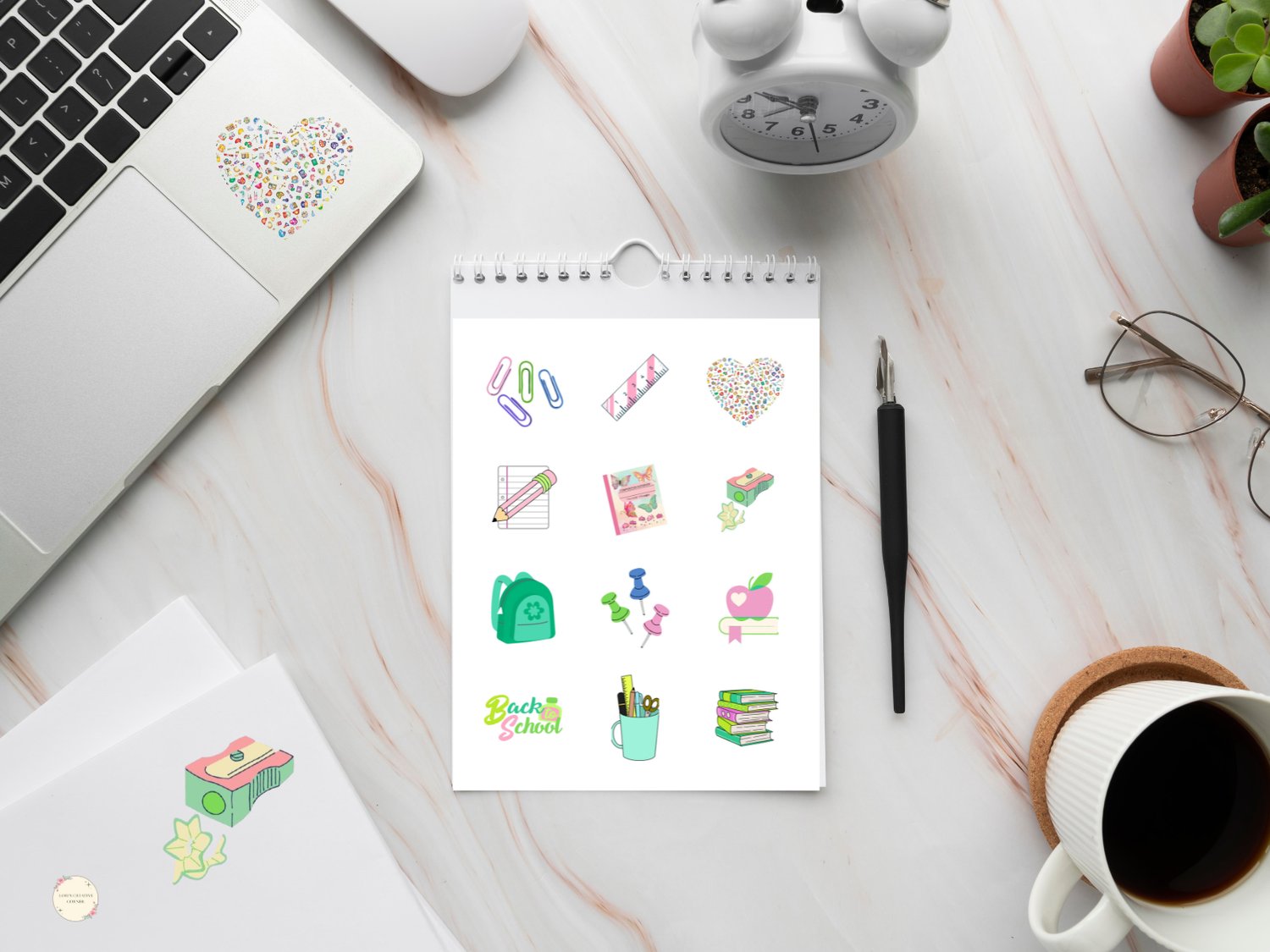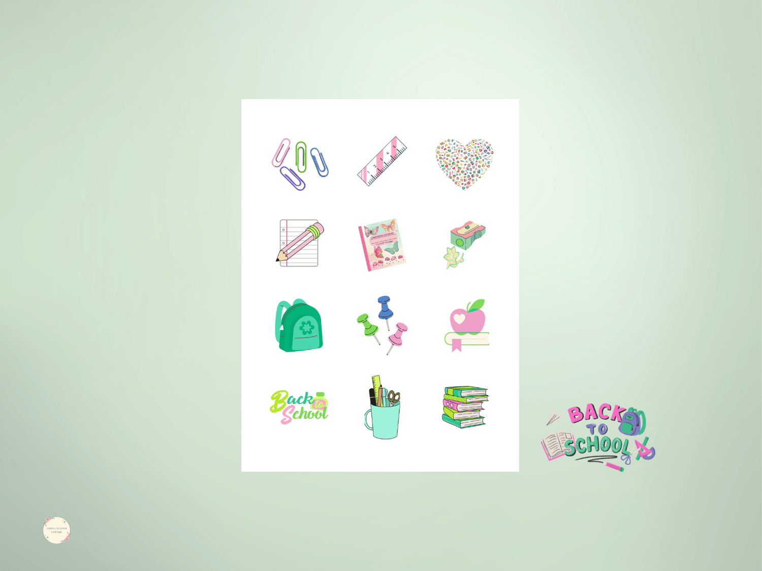 Make back-to-school extra fun with this colorful sticker sheet designed in soft pinks and greens! Perfect for planners, lunchboxes, notebooks, and more β these sweet school-themed designs are a fun way to get excited for the new year.
