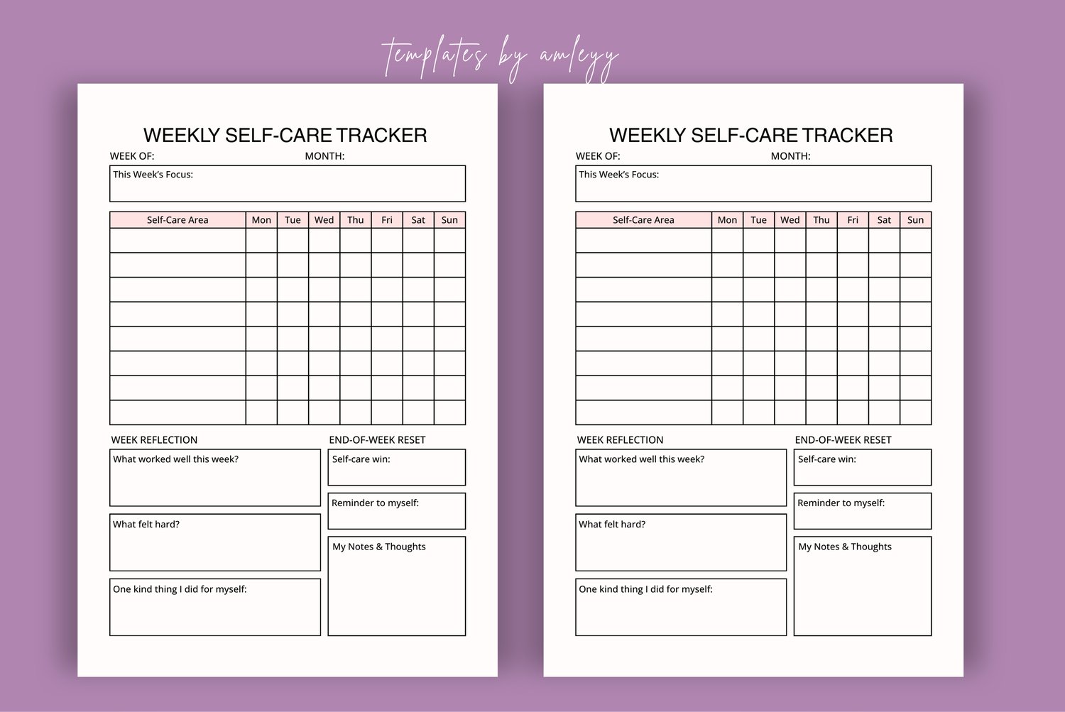 Elevate your self-care routine with this Weekly Self-Care Tracker Planner Template—the easy, stylish way to prioritize your wellness every week.