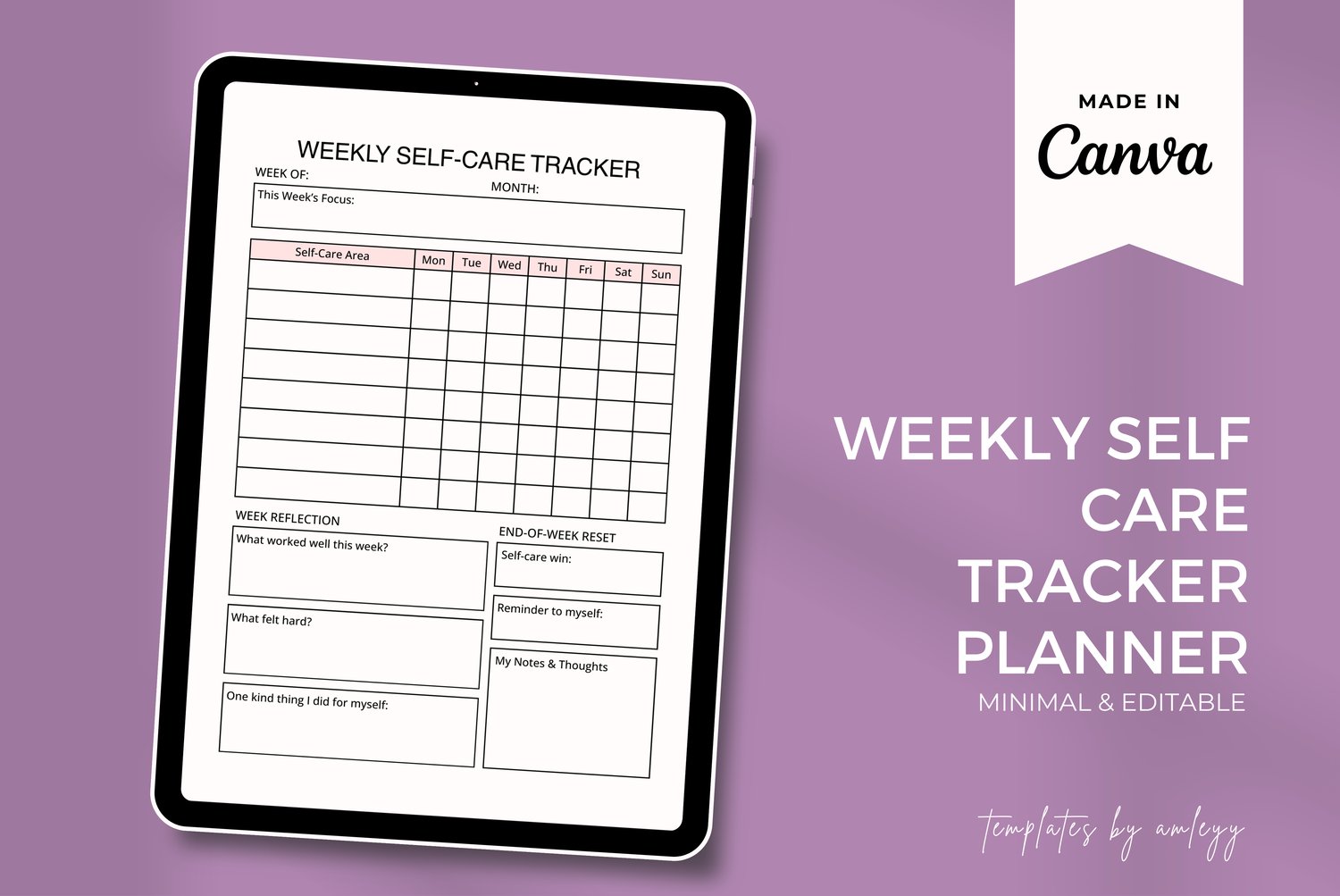 Weekly Self-Care Tracker Planner Template | Minimal Wellness, Habit & Mindfulness Journal for Canva | Printable & Editable