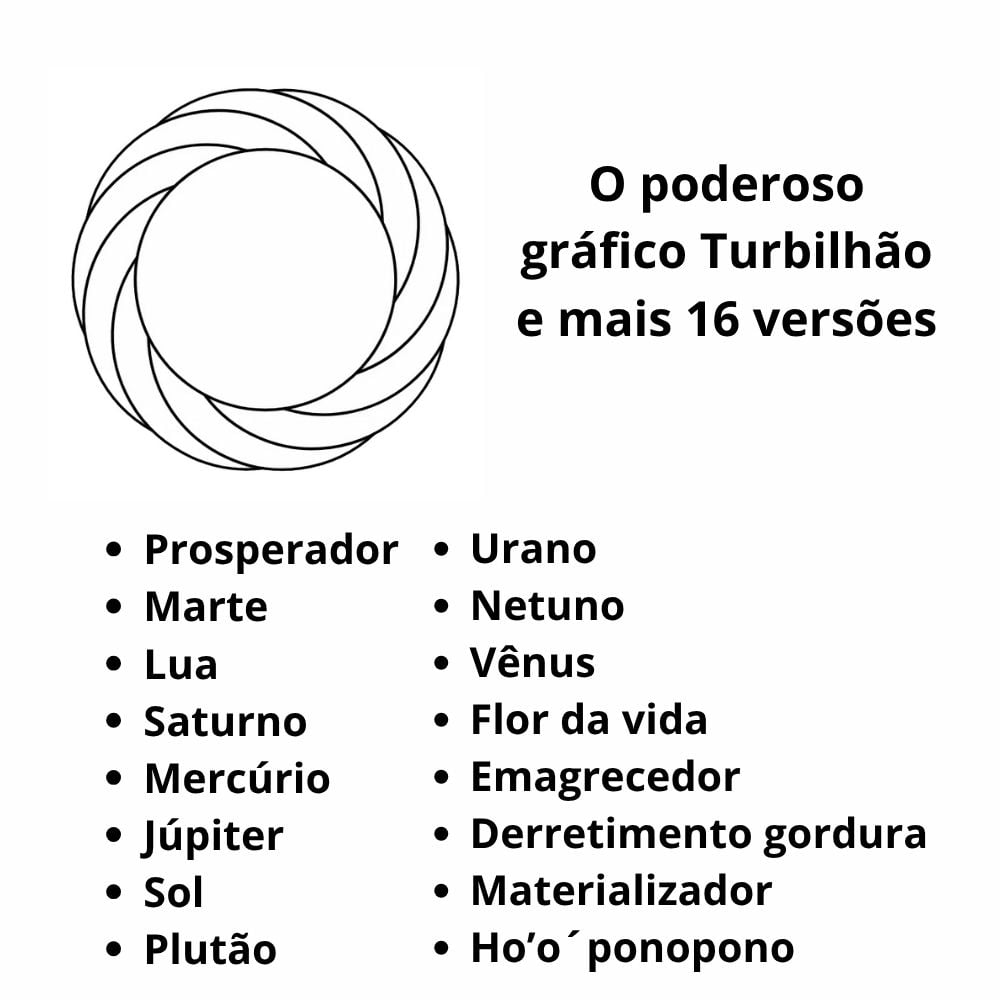 Ideal para radiestesistas terapeutas energéticos. Este pacote oferece o clássico Gráfico Turbilhão + 16 variações específicas, cada uma com um propósito energético voltado a temas como cura, prosperidade, emagrecimento, espiritualidade e limpeza energética.