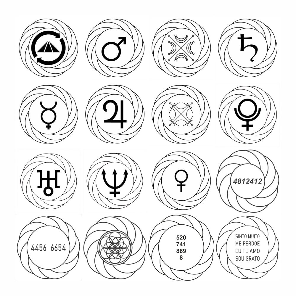 Formas de uso (sugestão): Imprima em folha branca, coloque sobre o corpo, use nas mãos, junto a pêndulo, em visuais e meditações, gráficos, colagem em parede ou ambiente terapêutico.