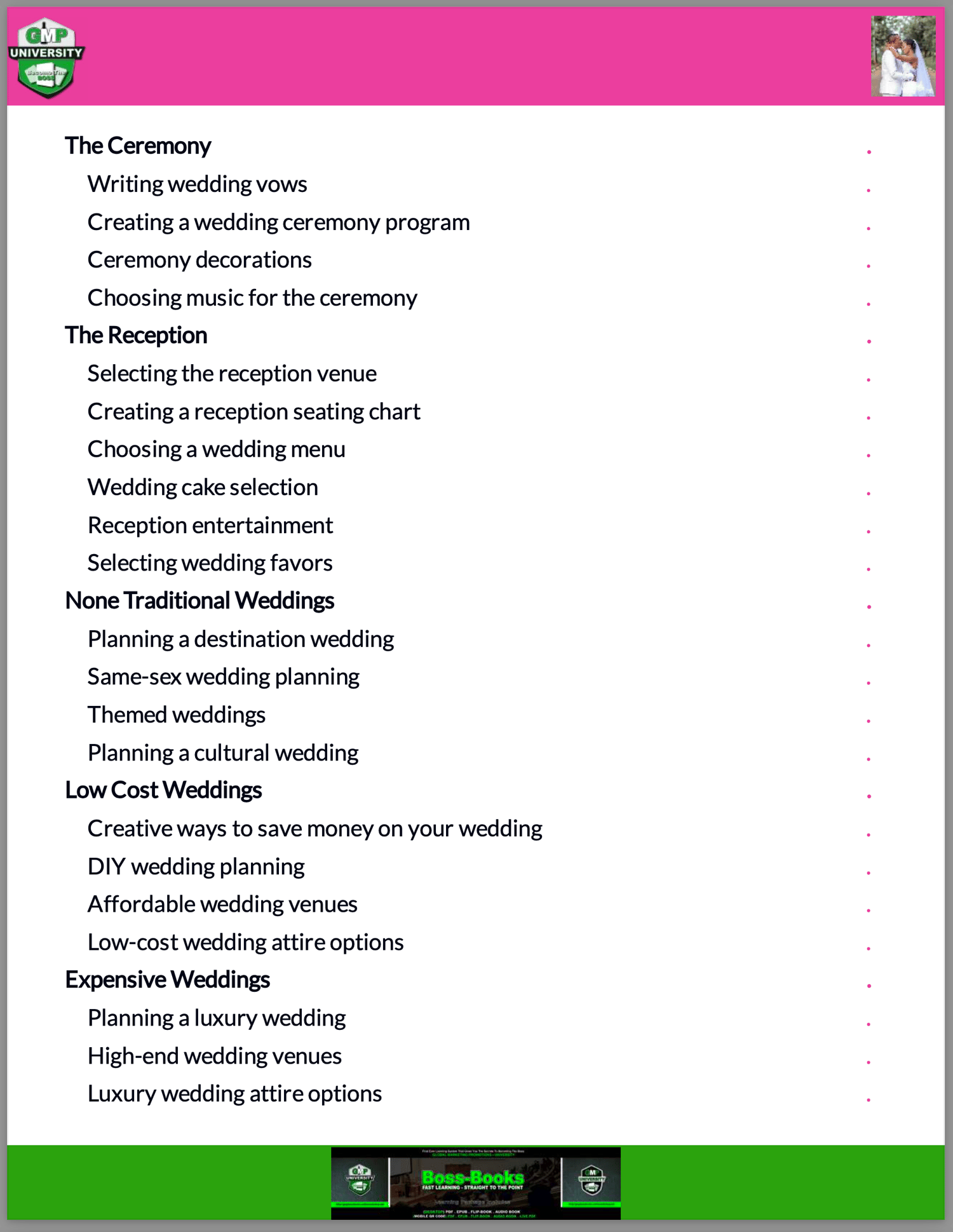 Wedding Planning Business - GMP University Boss Book - With 5 Free A.I Website Builders