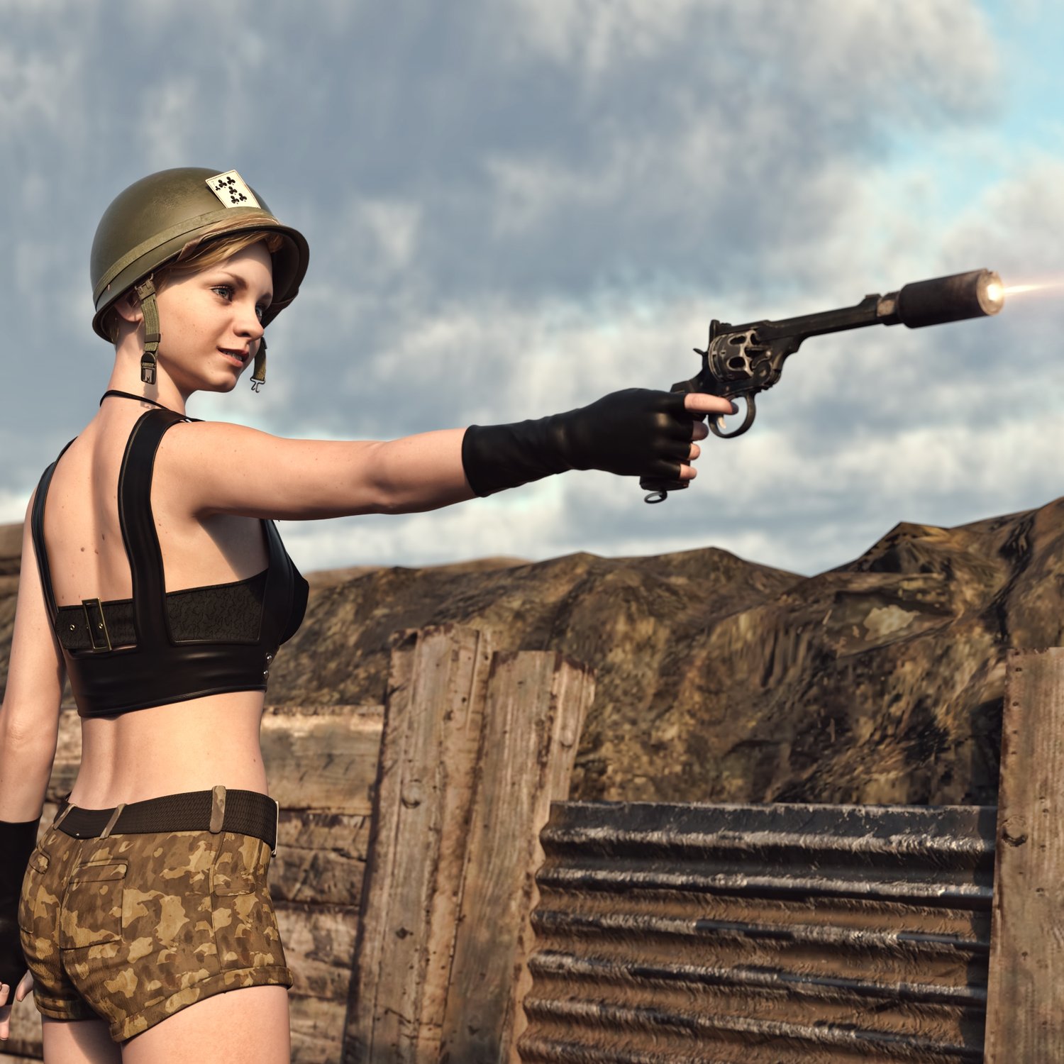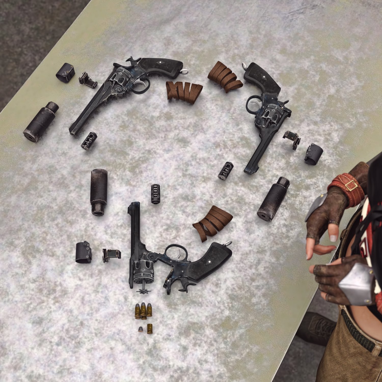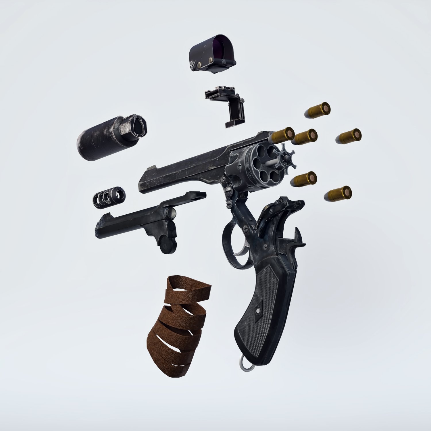 One of the coolest revolvers of mid-centuries. Designed in the end of 19th century, was in use long after WW2. The cool top breaking design allows to reload faster and provides a good advantage over the enemy. And it also looks cool, of course :D The prop is rigged and converted for use with DAZ. Trigger, safety, barrel, drum etc also rigged for more realistic pictures.