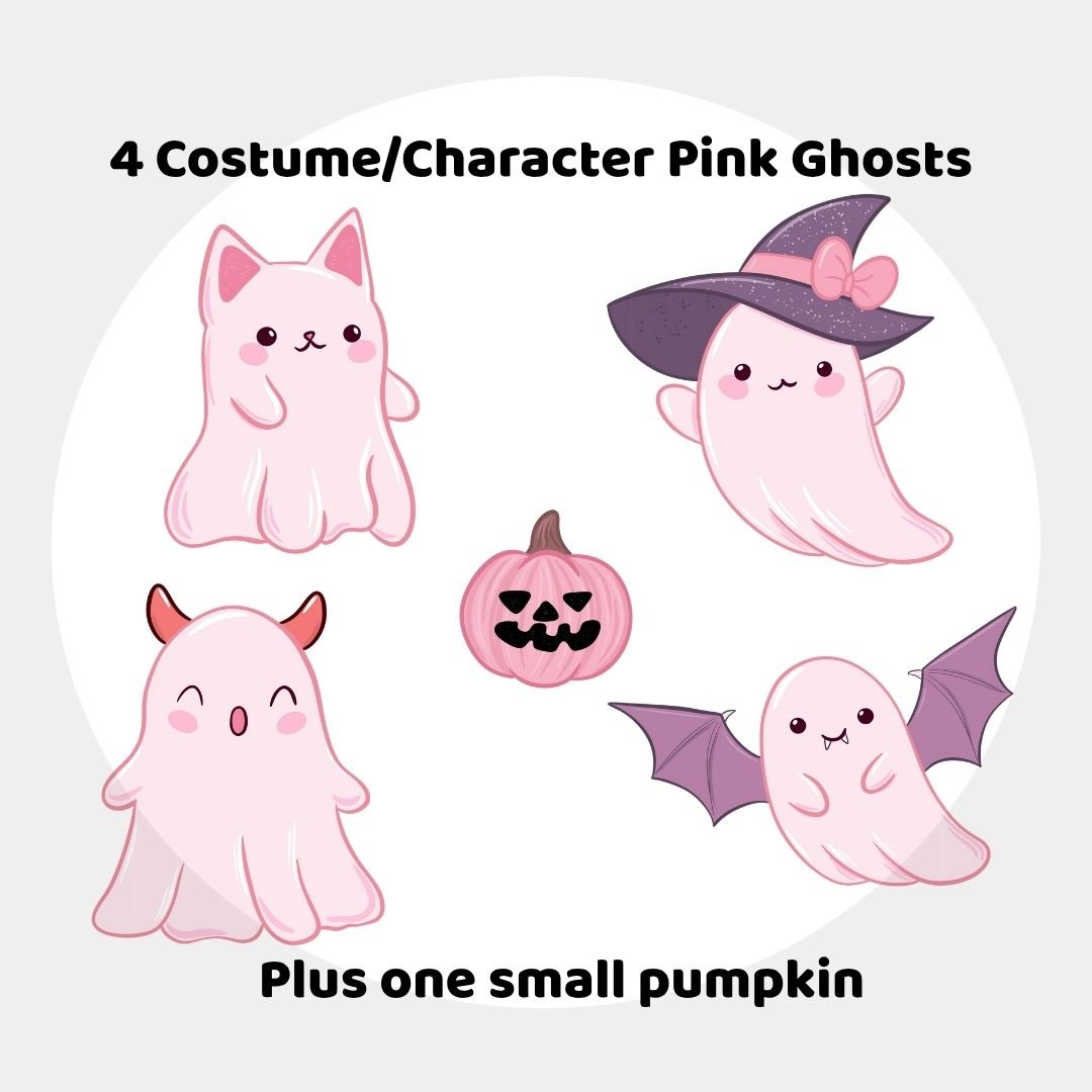 Small Ghost Clipart Pack | Cute Pastel Halloween PNG Set | Kawaii Ghosts & Pumpkin | Spooky Cute Digital Download